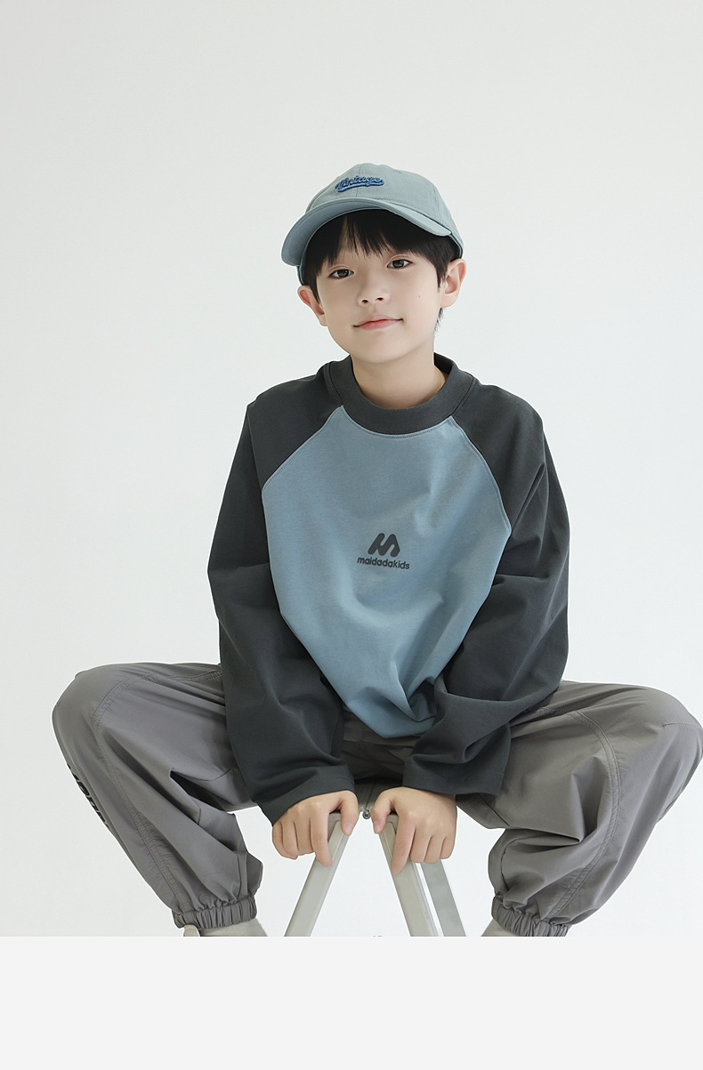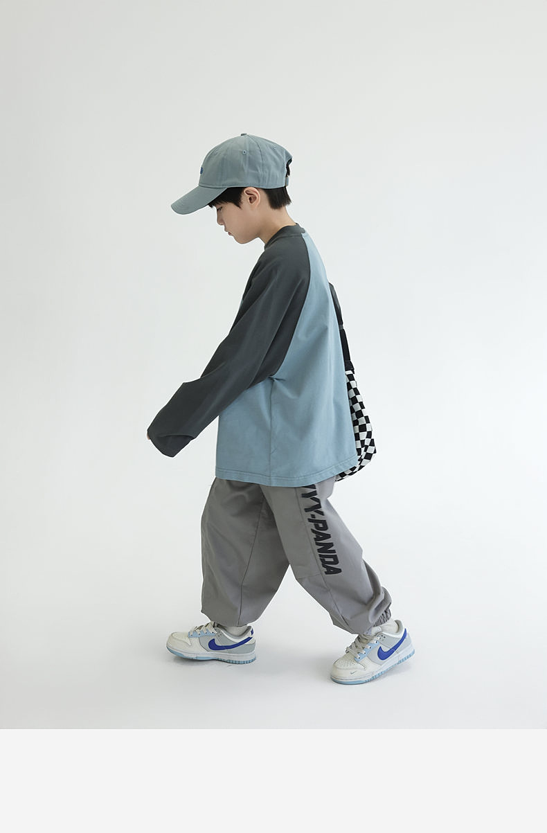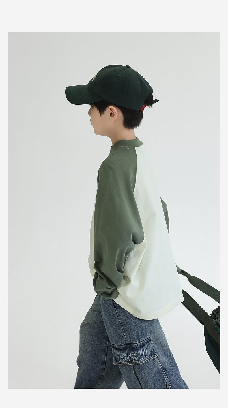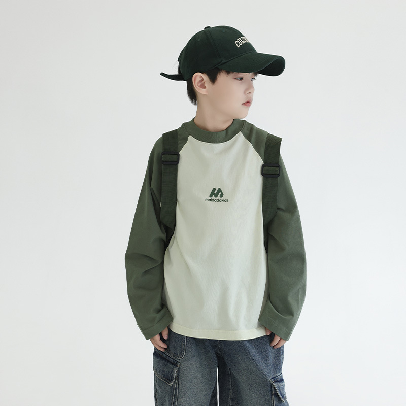 팬더 Yuanyuan 2025 봄 새로운 Raglan 슬리브 코튼 보이즈 긴 소매 티셔츠 어린이 무거운베이스 셔츠 도매