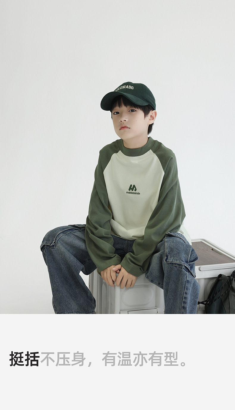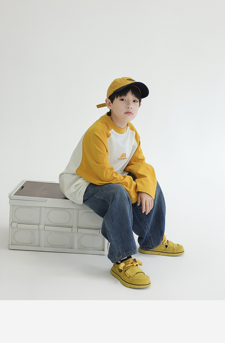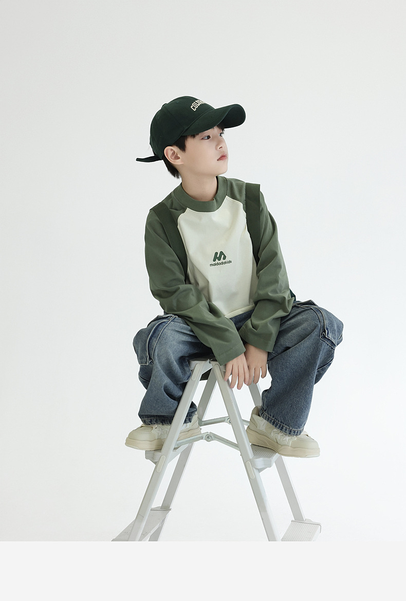 팬더 Yuanyuan 2025 봄 새로운 Raglan 슬리브 코튼 보이즈 긴 소매 티셔츠 어린이 무거운베이스 셔츠 도매