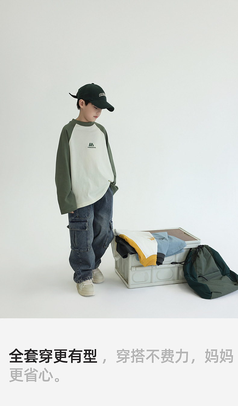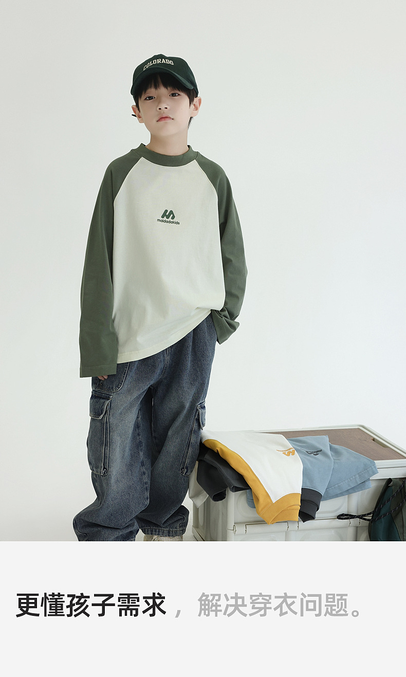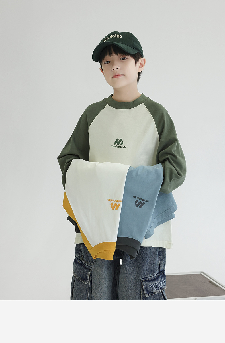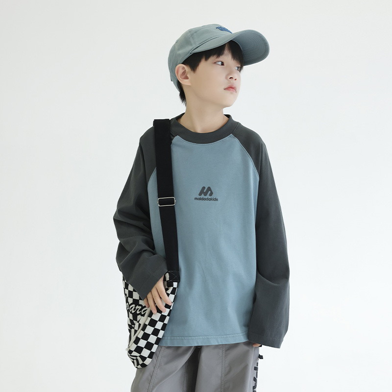 팬더 Yuanyuan 2025 봄 새로운 Raglan 슬리브 코튼 보이즈 긴 소매 티셔츠 어린이 무거운베이스 셔츠 도매스토어 가기