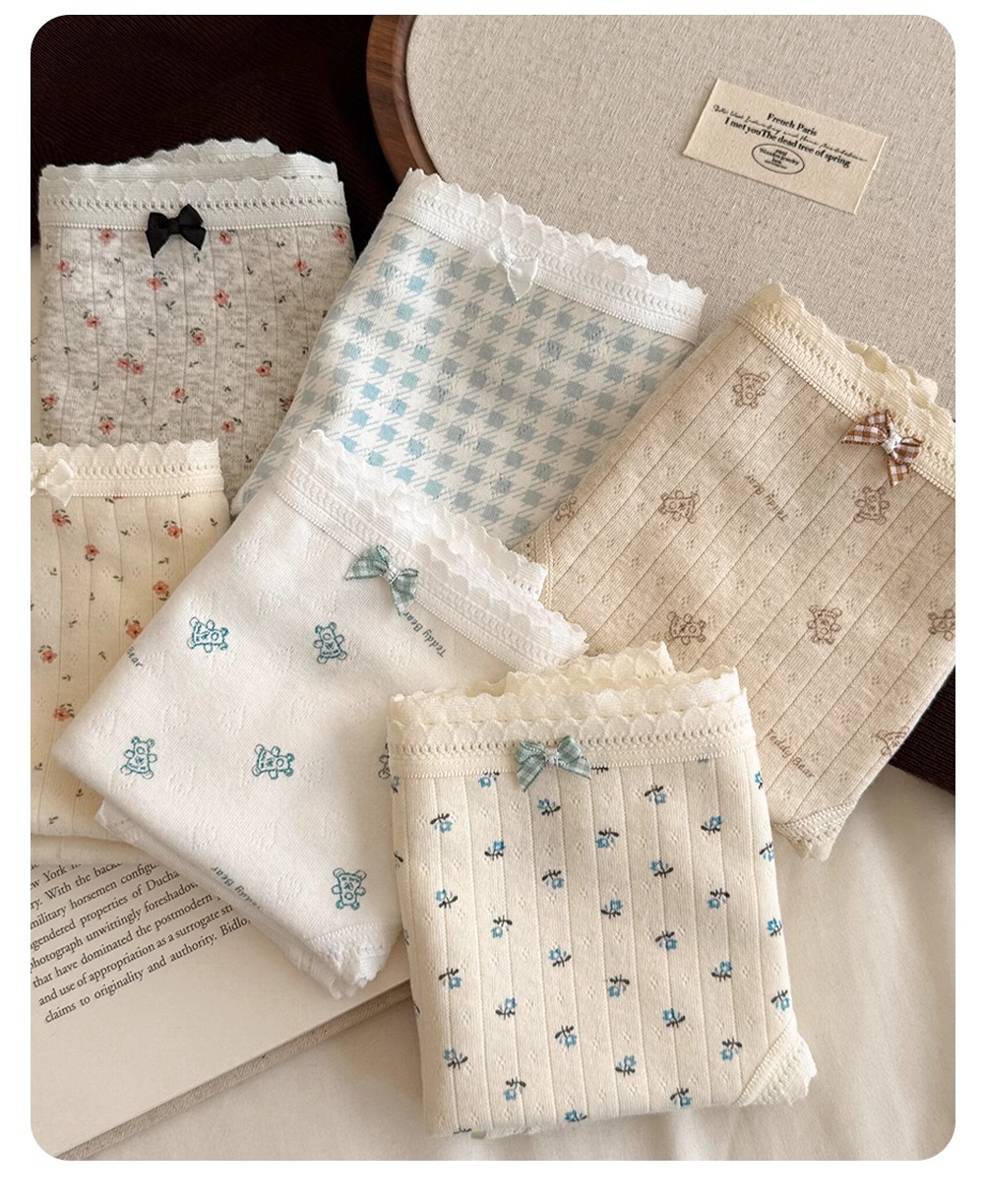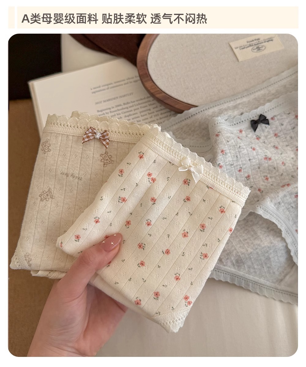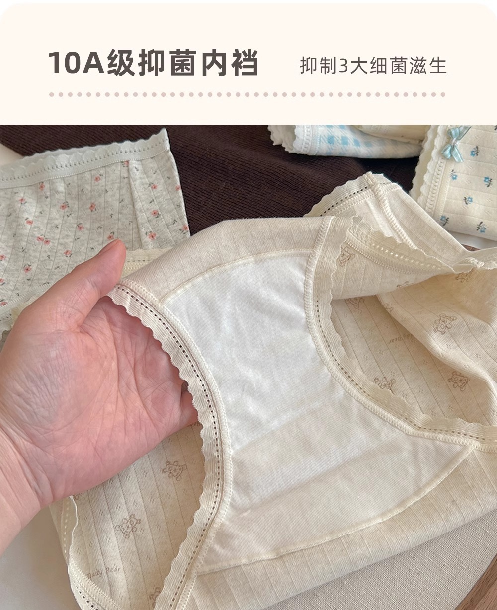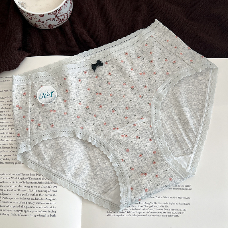 10A Bacteriostatic layered Crotch Panties Cotton Floral Lace Women's Briefs Mid-Waist Hip Cotton 통기성 반바지스토어 가기