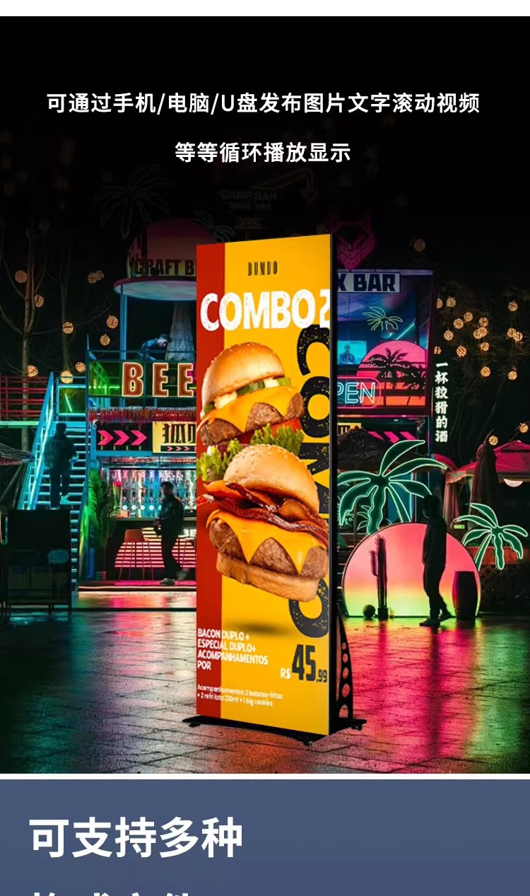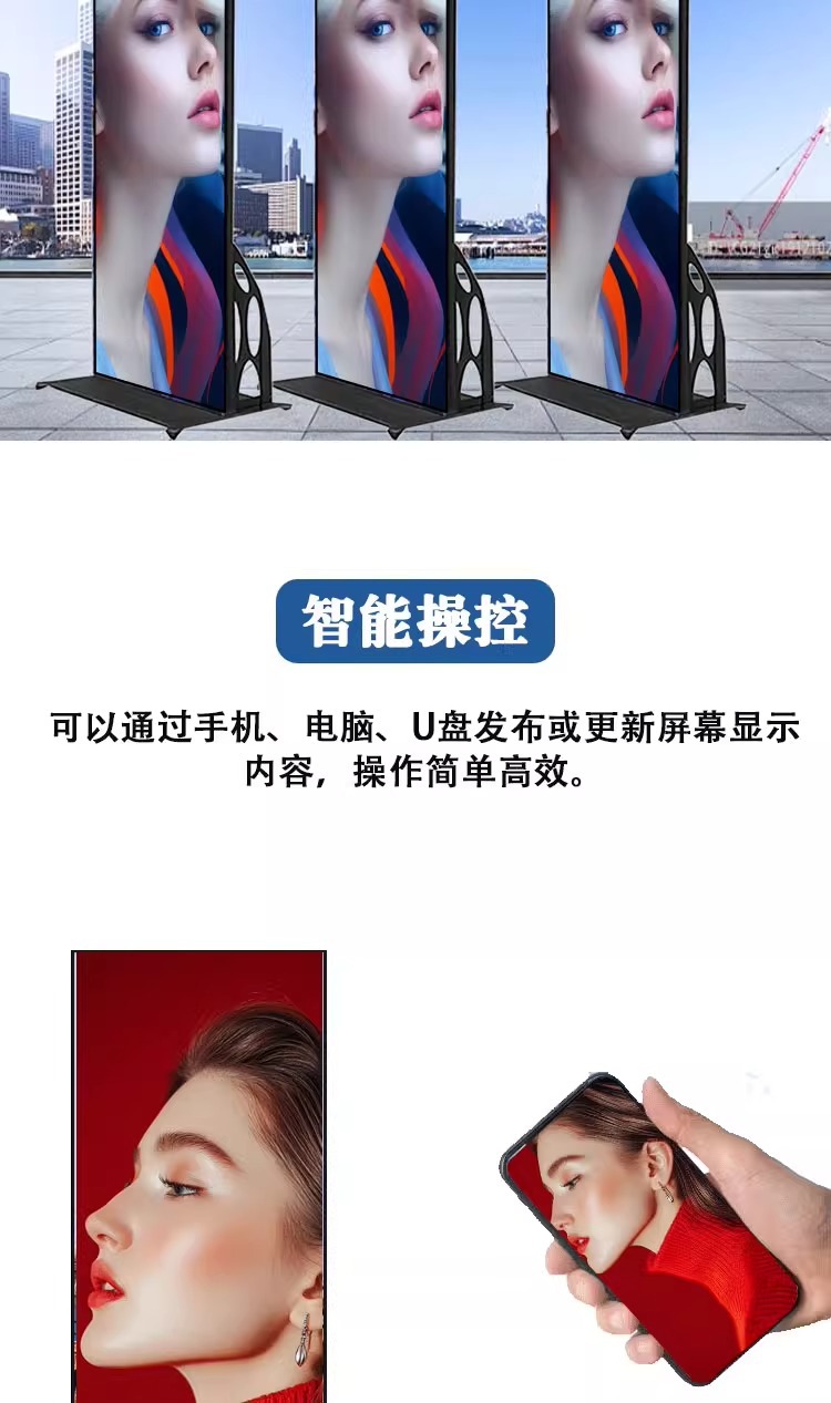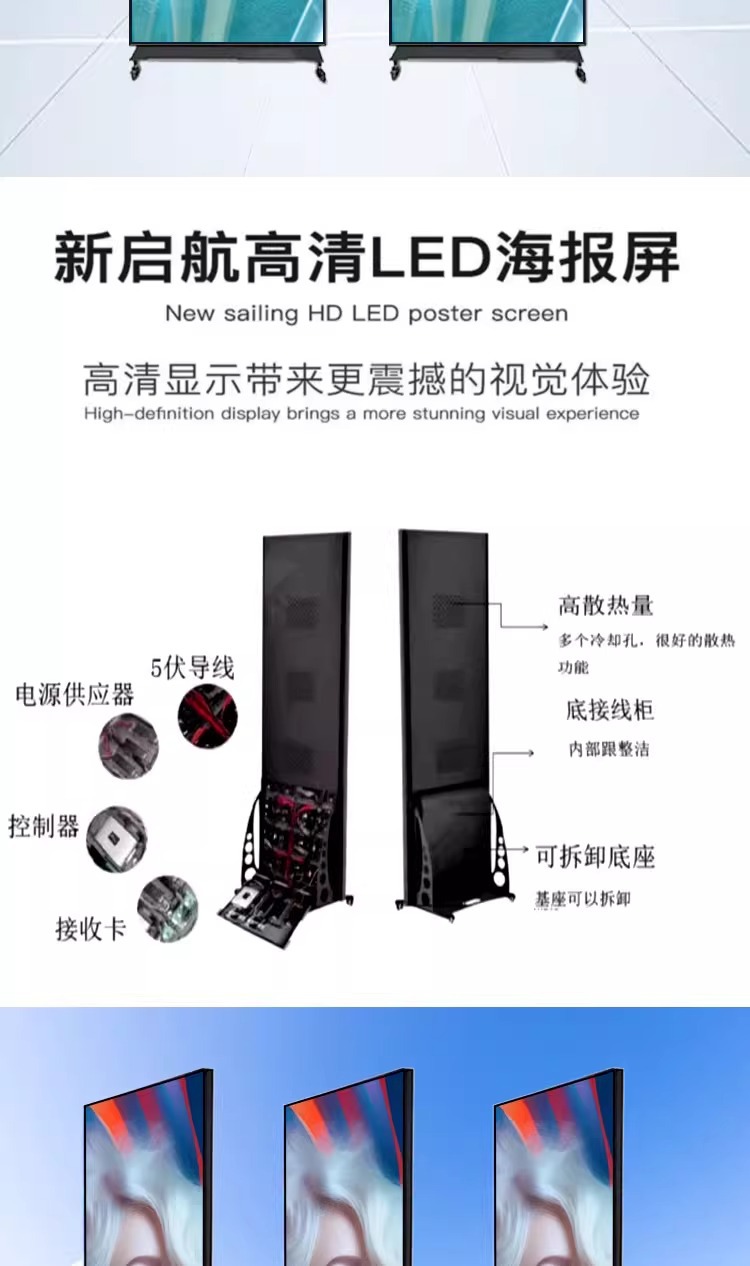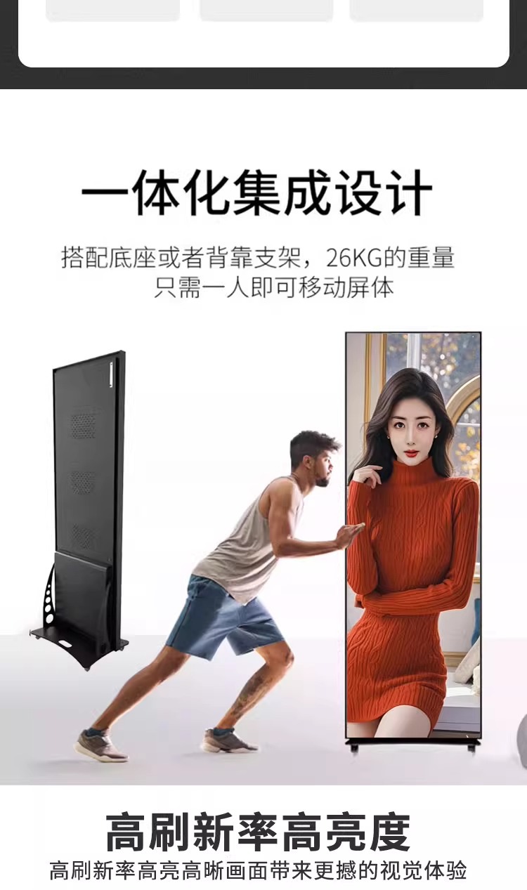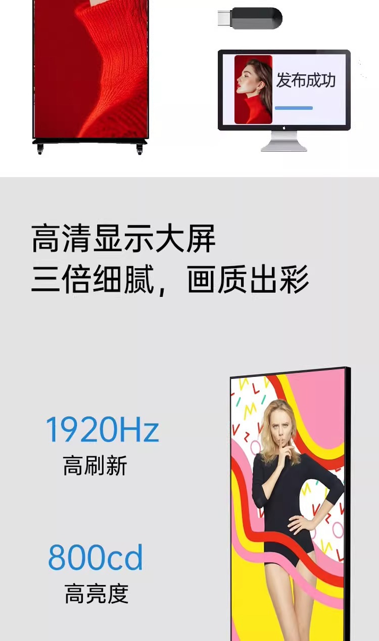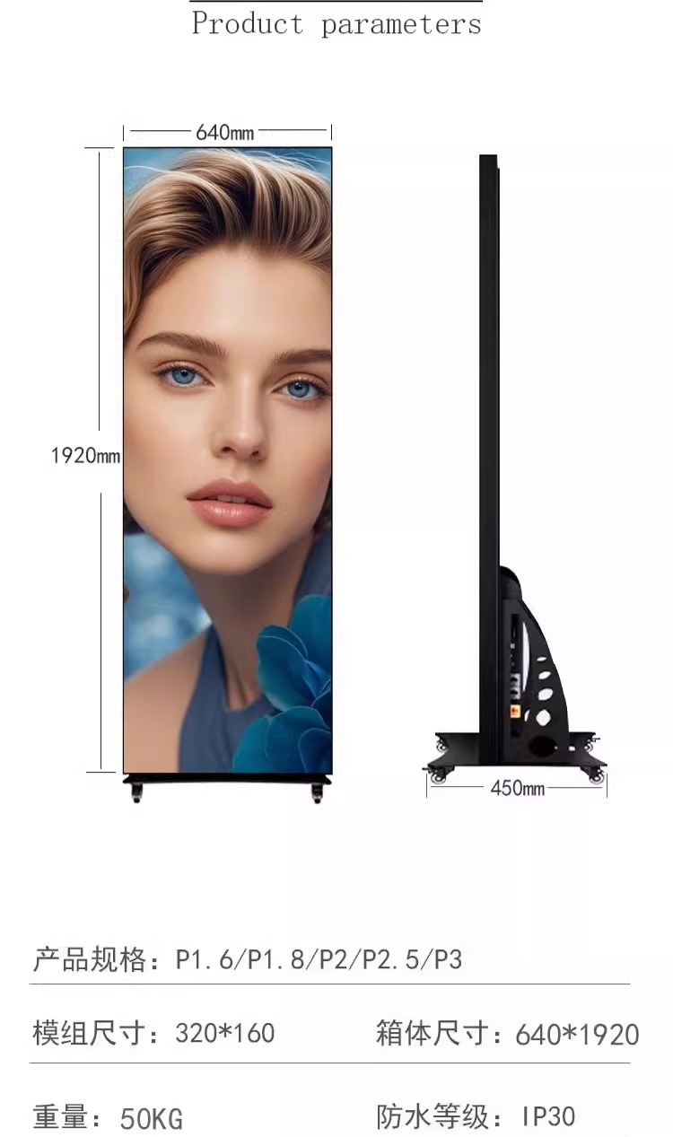 LED 풀 컬러 전자 포스터 스크린 이동식 쇼핑몰 전체 거울 스크린 실내 원활한 접합 수직 광고 기계