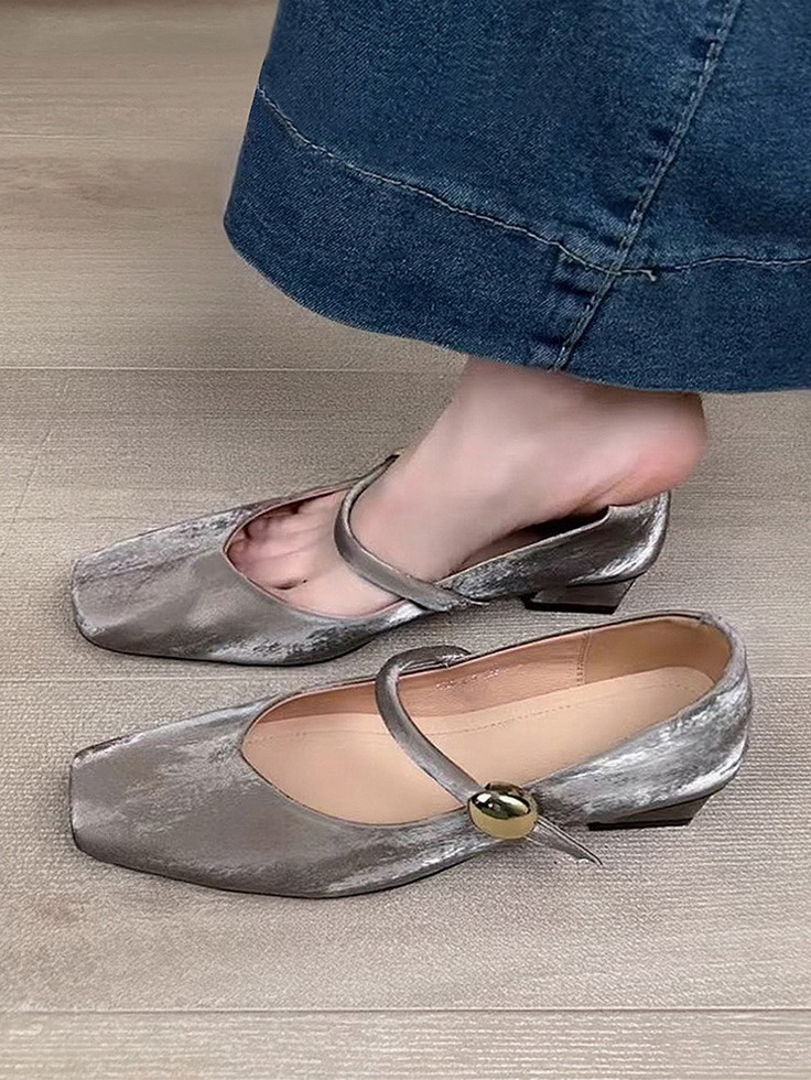 流行元素:法式 复古 方头 绒面 金属 一字带 玛丽珍 芭蕾鞋 绝美 粗跟undefined