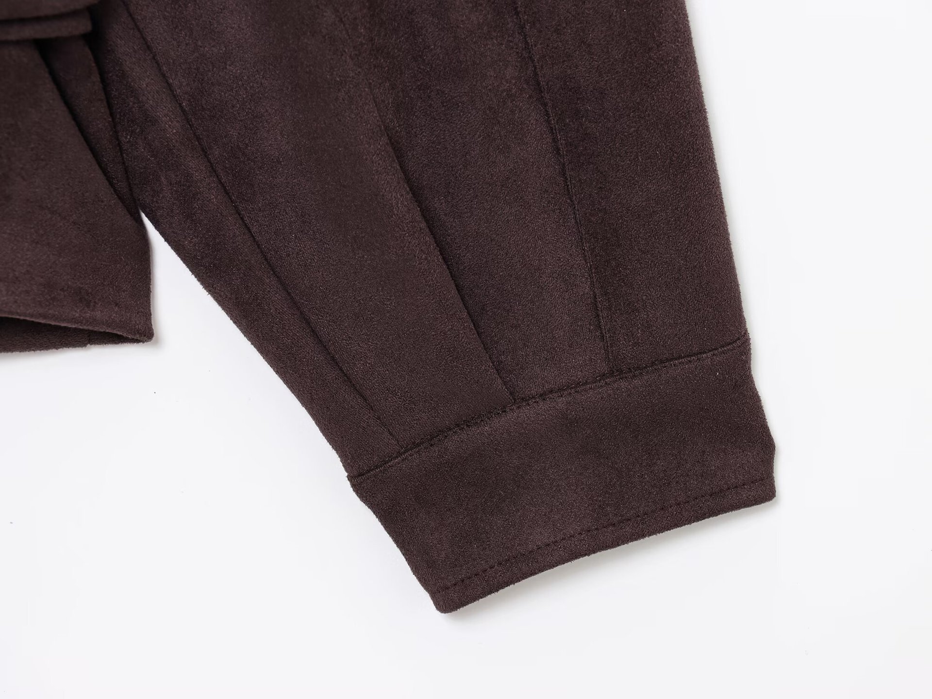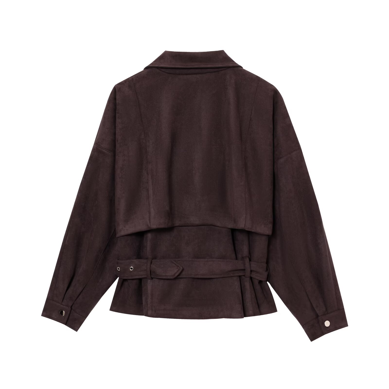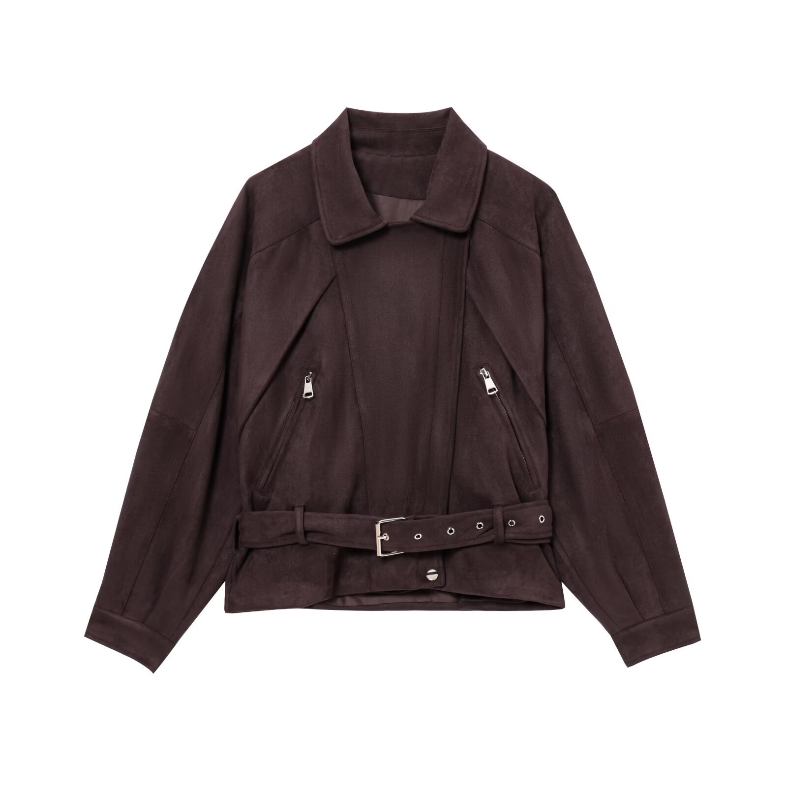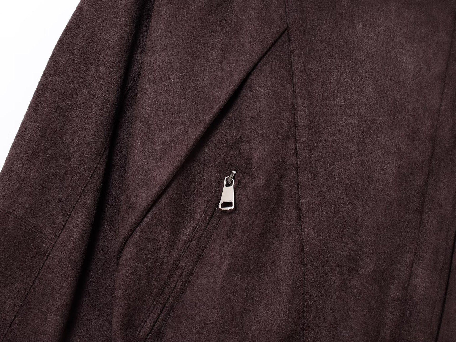 2025년 봄 신상 유럽 및 미국 스타일 다용도 캐주얼 패션 스웨이드 바이커 재킷 (해외 무역 여성복)