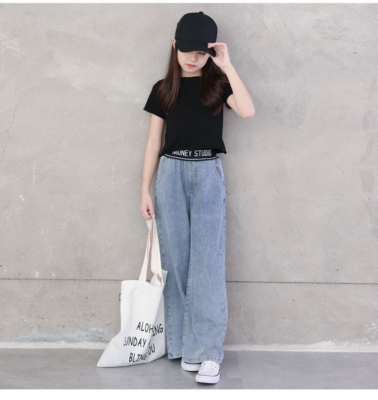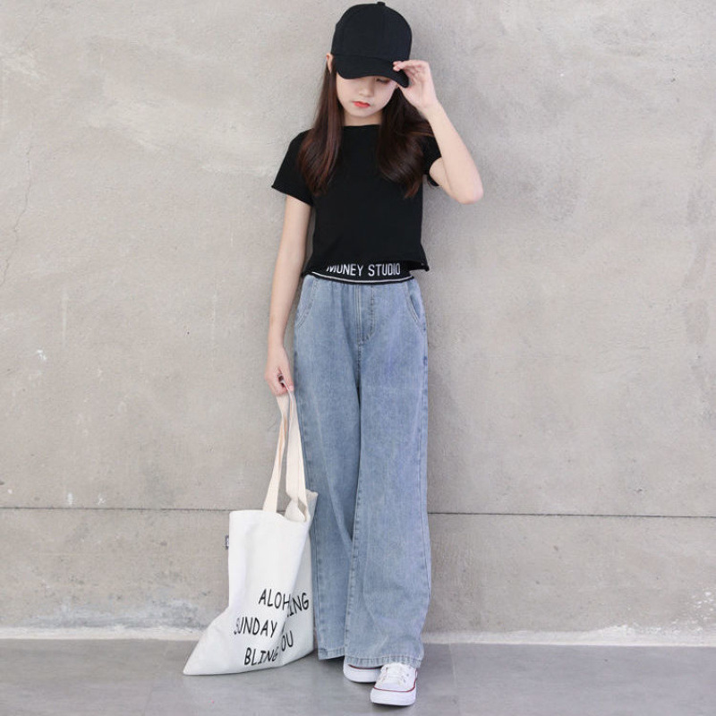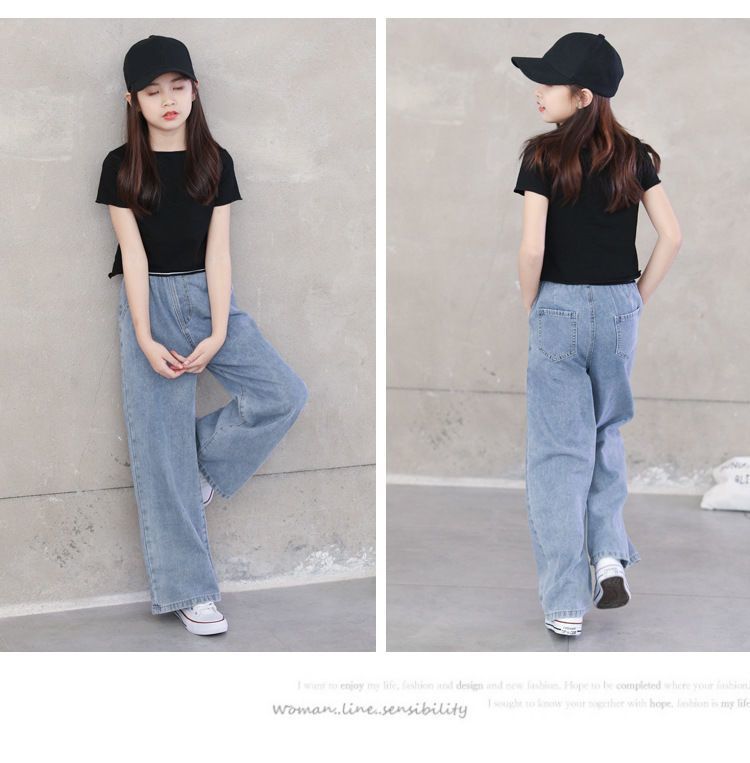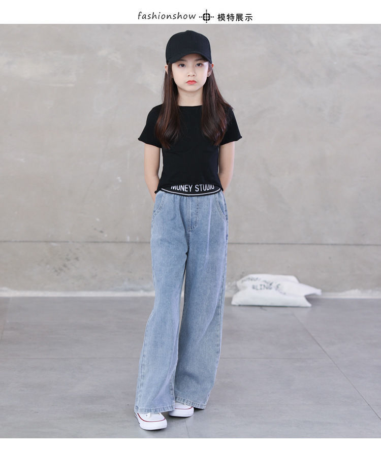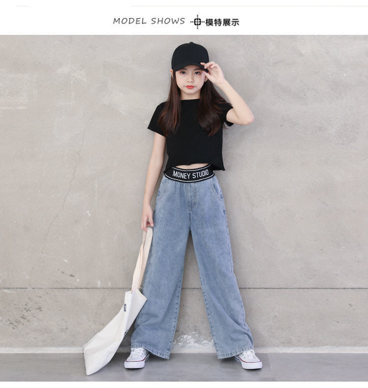 아동복 2023 여아 봄, 가을 청바지 중대형 아동 여아 바지 캐주얼 루즈 한국 패션 와이드 팬츠