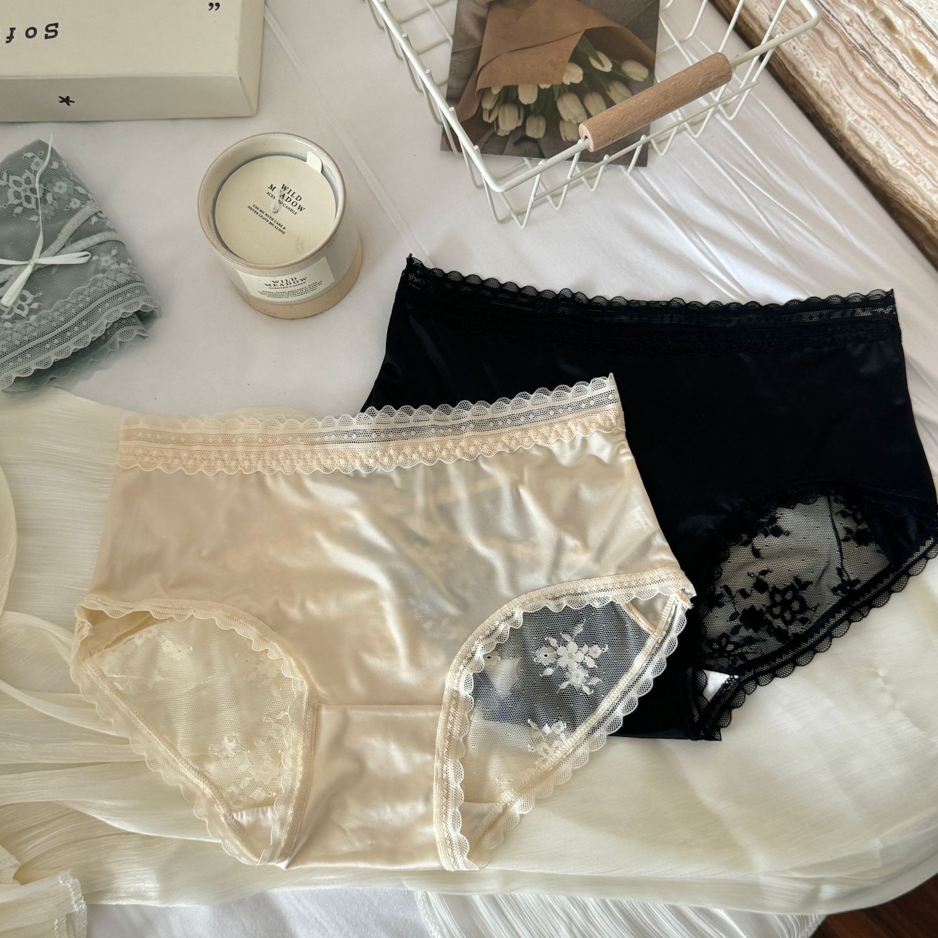 얇은 여름 프랑스 순수 투명 소녀 속옷 중간 허리 활 레이스 실크 코튼 속옷 여성스토어 가기