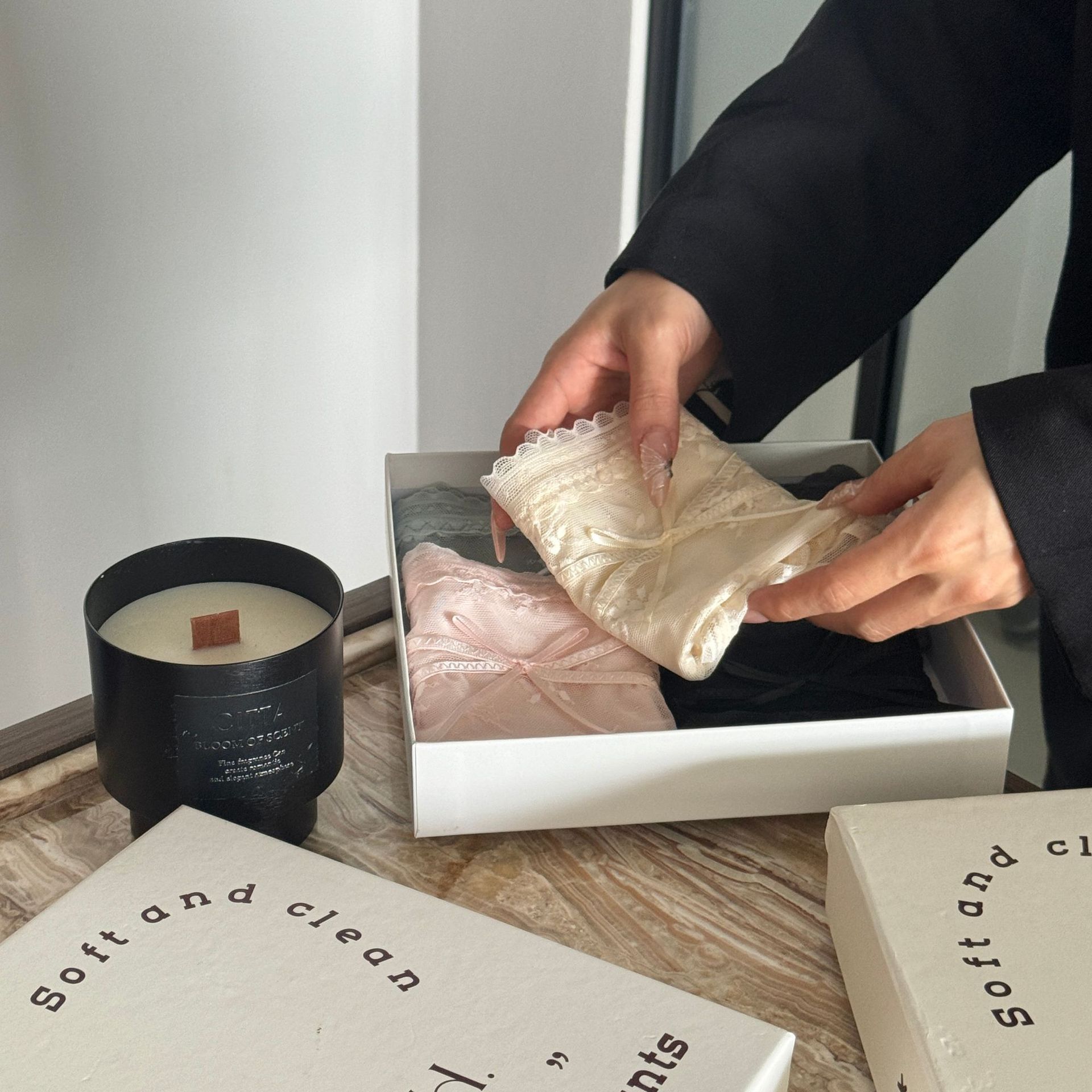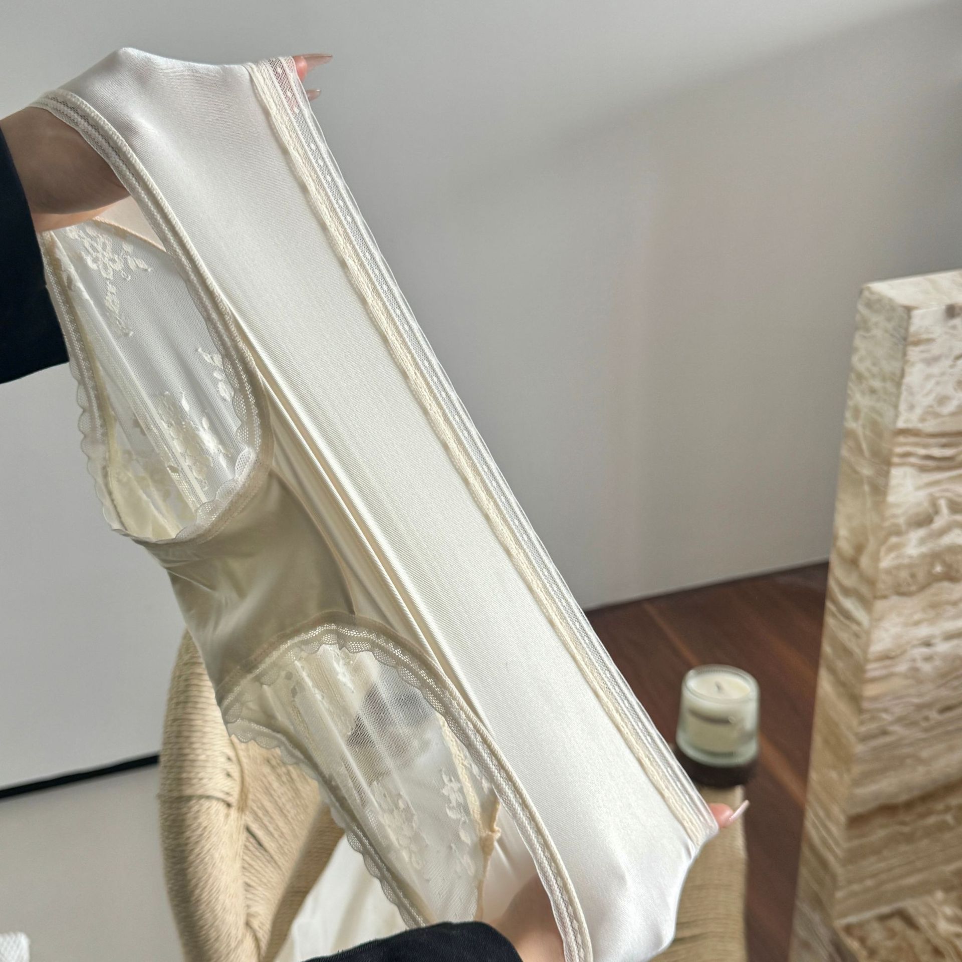 얇은 여름 프랑스 순수 투명 소녀 속옷 중간 허리 활 레이스 실크 코튼 속옷 여성
