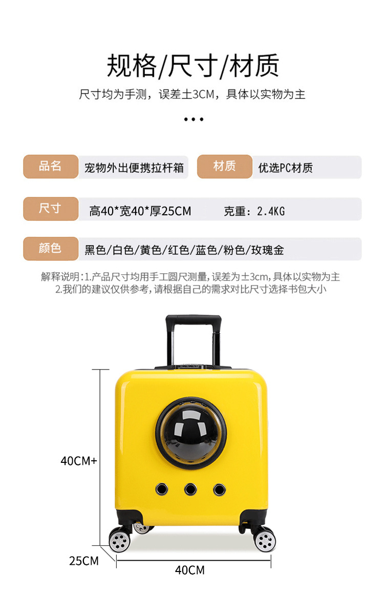 애완 동물 트롤리 가방 고양이 개 공간 캡슐 고양이 고양이 외출 휴대용 공기 케이스 휴대용 고양이 수하물 여행