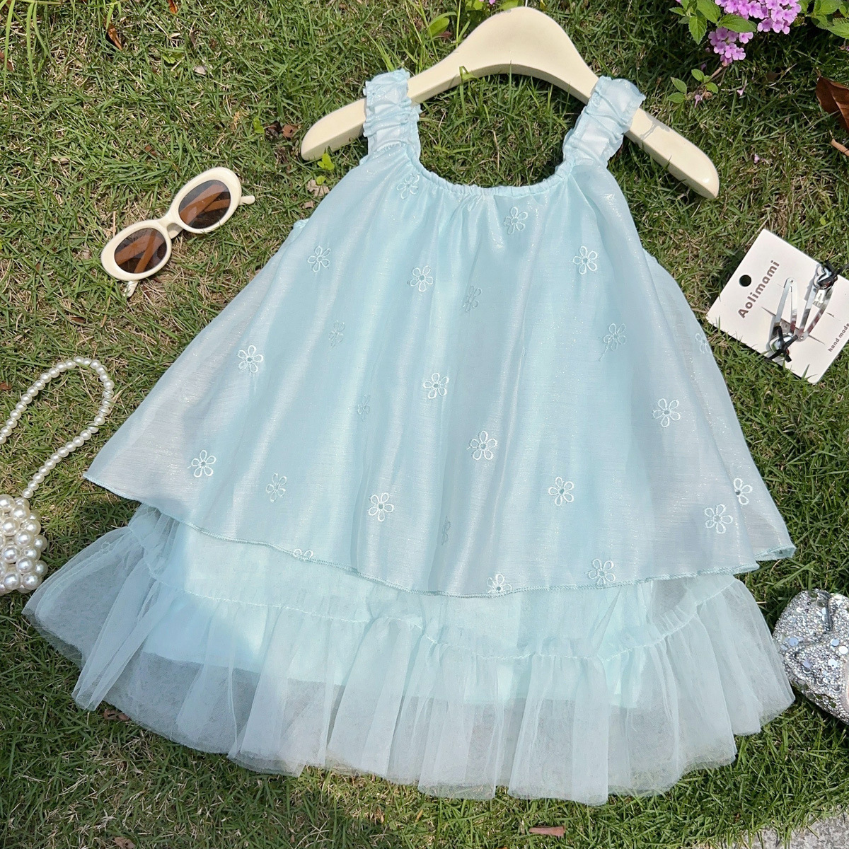 여아 드레스 여름 새 스타일 아기 소녀 세련되고 다재다능한 자수 서스펜더 드레스
