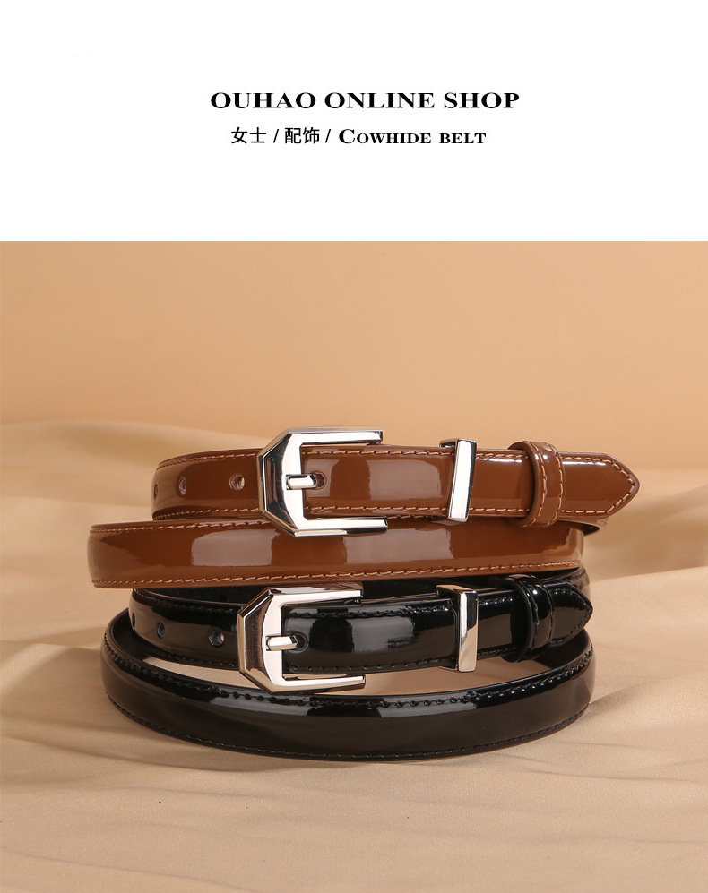 2025 특허 가죽 패션 벨트 여성 간단하고 다재다능한 장식 스커트 청바지 정품 가죽 얇은 벨트 여성 도매
