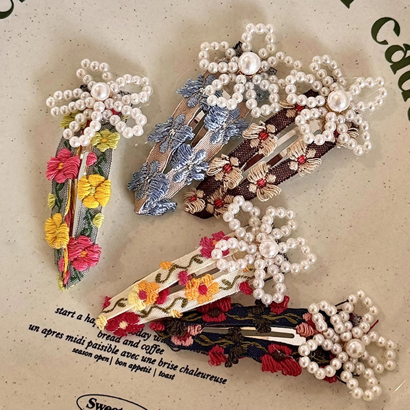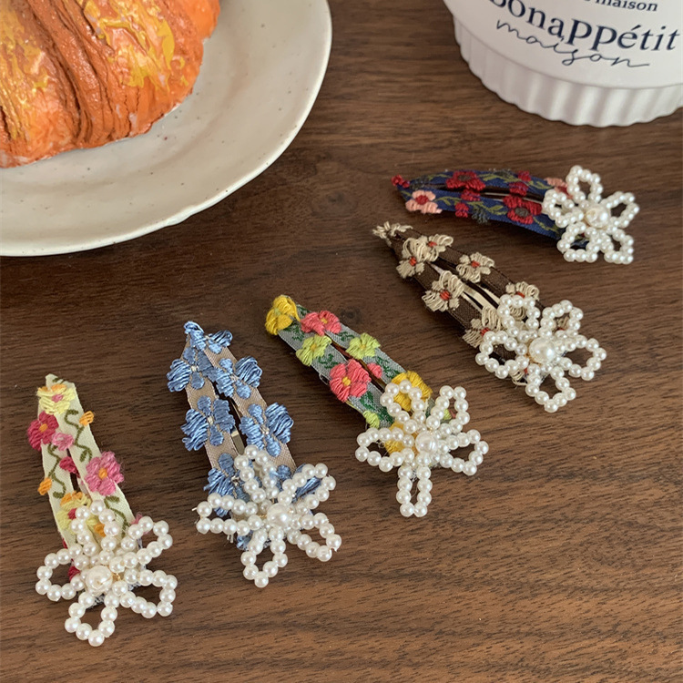 국경 새 봄과 여름 꽃 구슬 꽃 물방울 머리핀 쌍 머리핀 사이드 클립 앞머리 클립 귀여운 사이드 클립