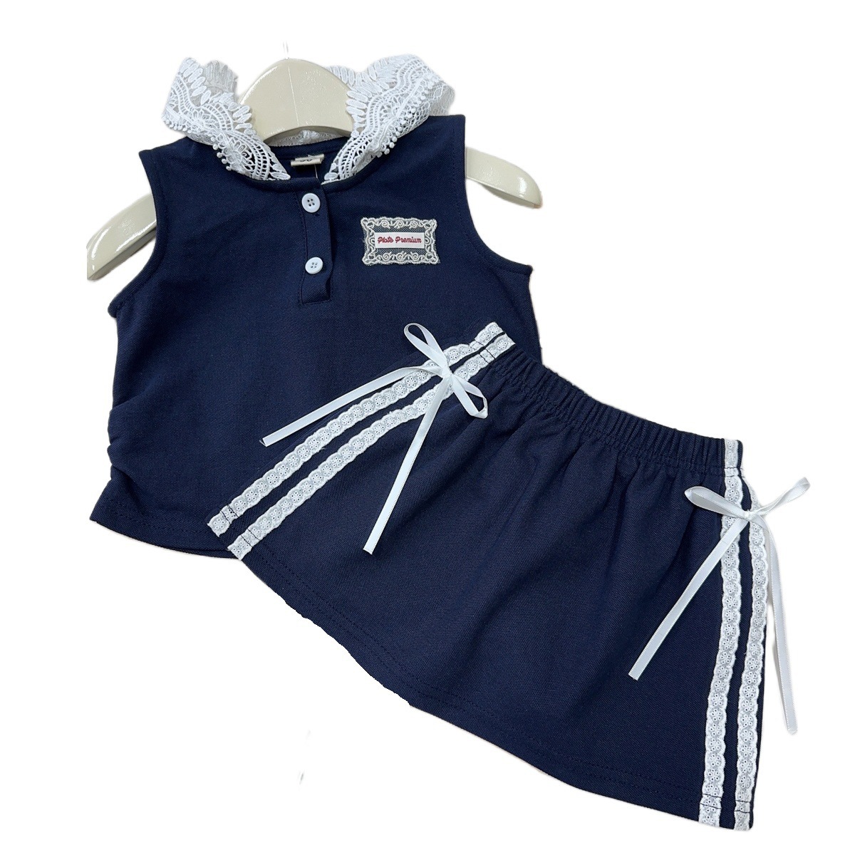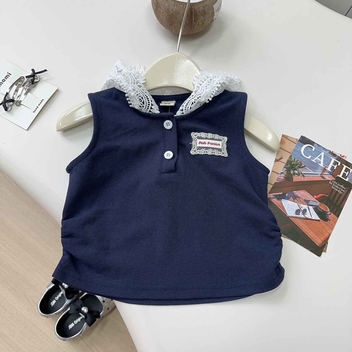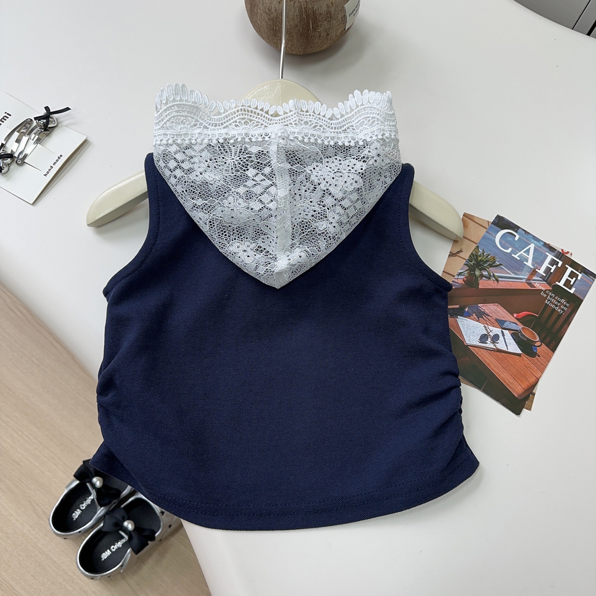 여자 여름 새 스타일 아기 소녀 대학 스타일 캐주얼 후드 레이스 스플 라이스 조끼 스커트 투피스 세트