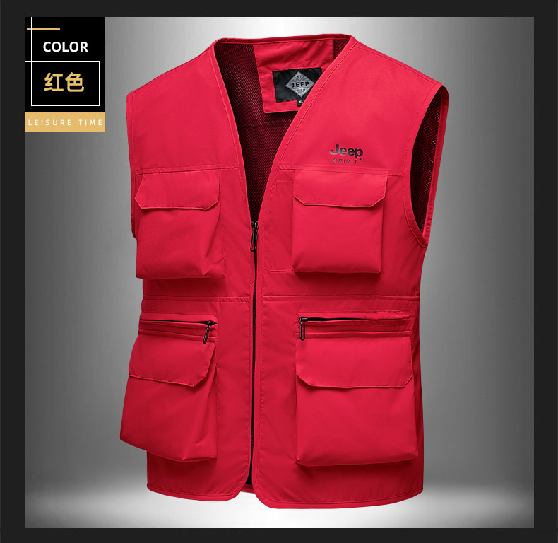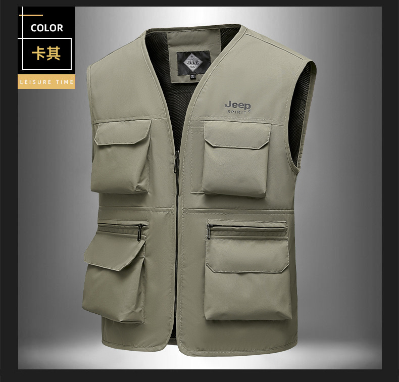 국경 간 브랜드 JEEP SPIRIT 새로운 남성용 멀티 포켓 속건 조끼 야외 등산 조끼스토어 가기