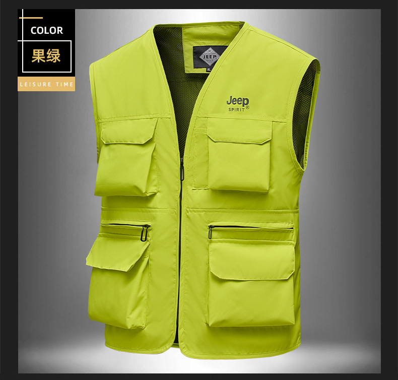 국경 간 브랜드 JEEP SPIRIT 새로운 남성용 멀티 포켓 속건 조끼 야외 등산 조끼
