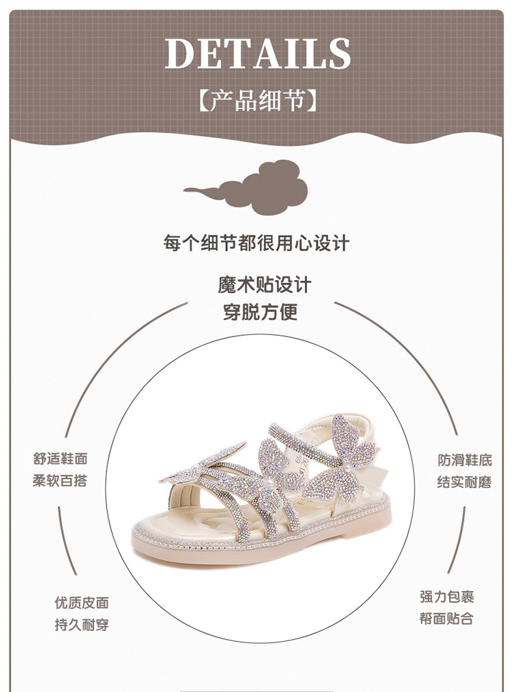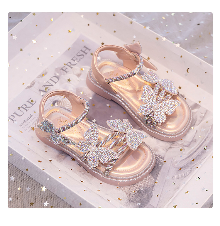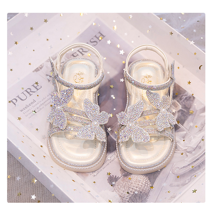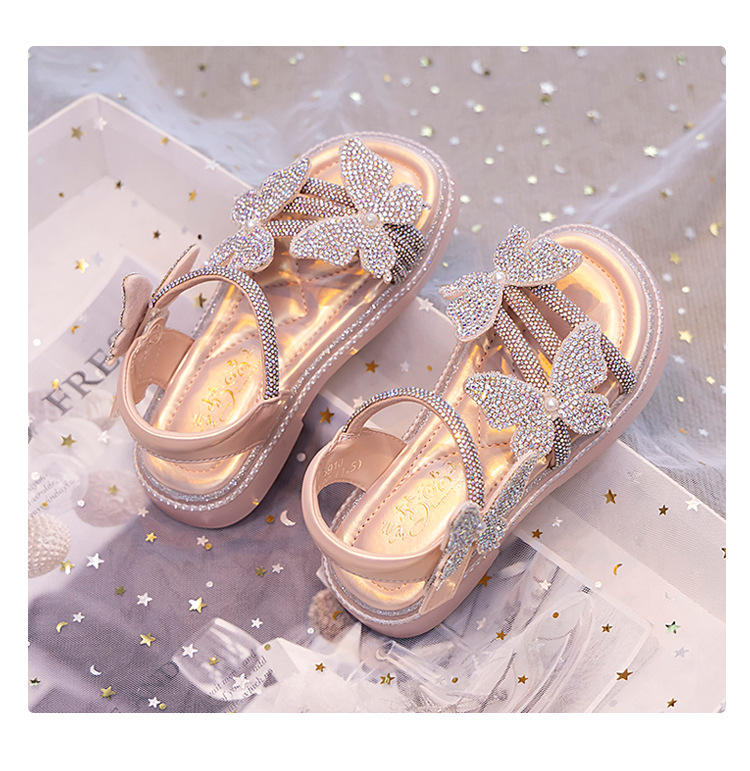 소녀의 부드러운 바닥 패션 샌들 2025 여름 새로운 소녀의 공주 신발 모든 매치 플랫 비치 신발 크리스탈 신발스토어 가기