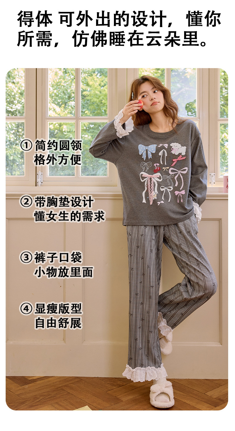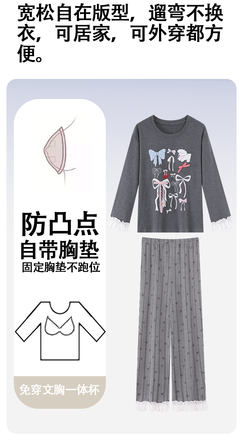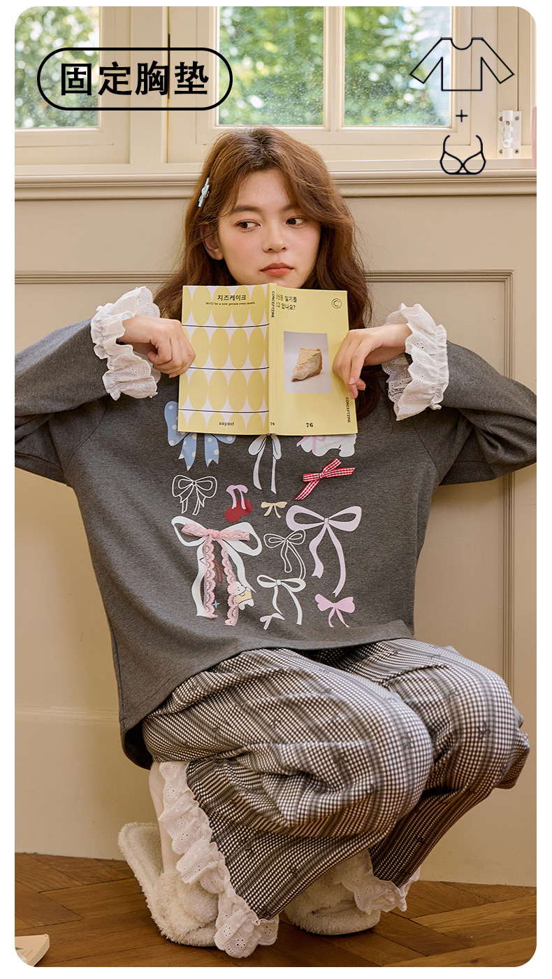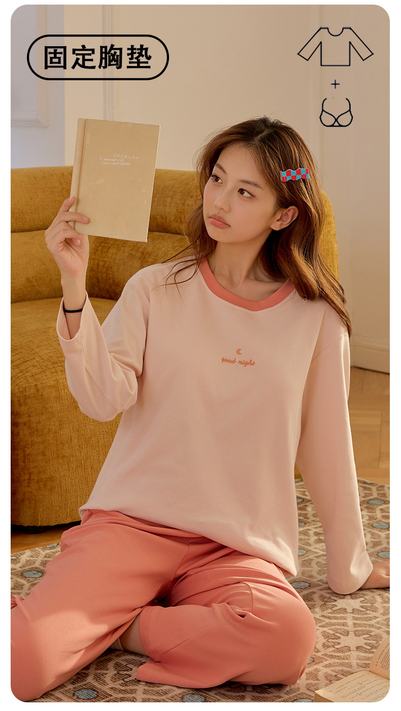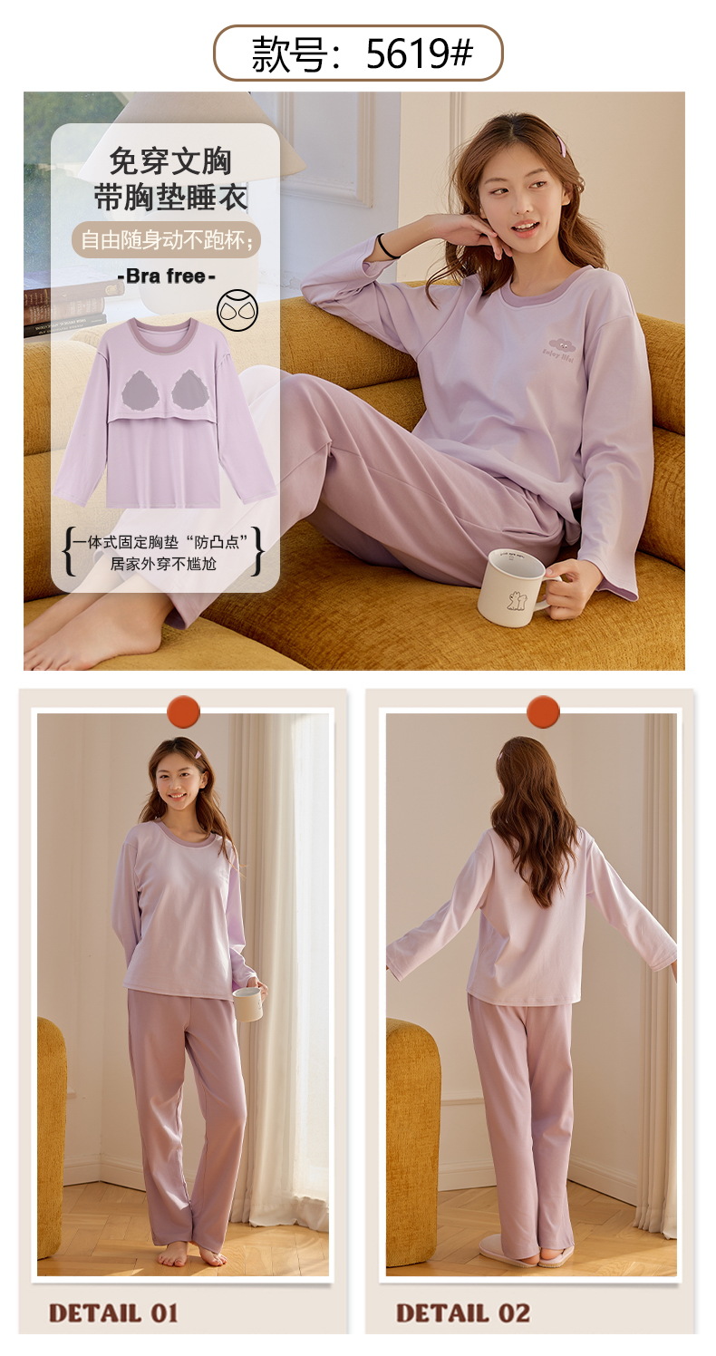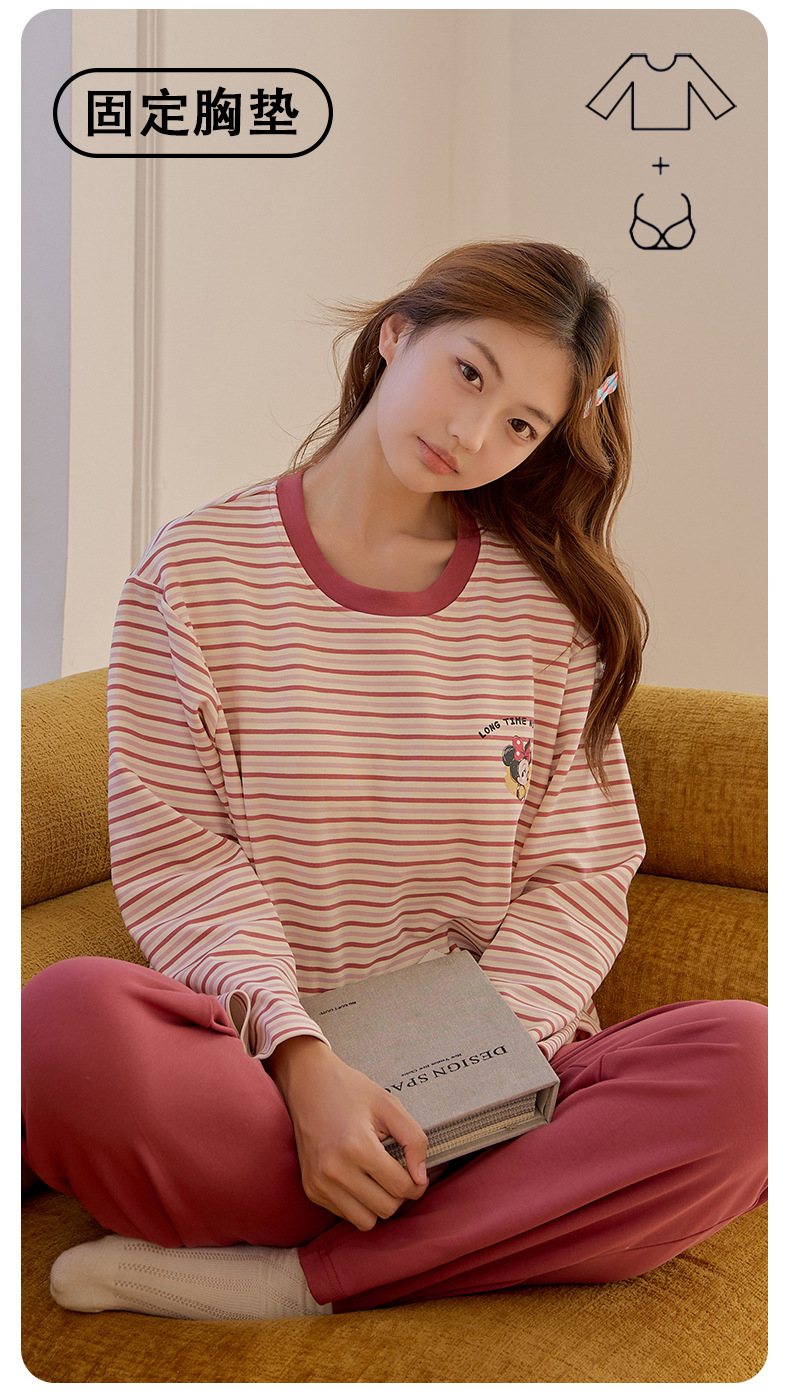가슴 패드가 있는 여성용 잠옷 2025 가을 겨울 코마사 면 긴팔 바지 세트 만화 귀여운 캐주얼 홈웨어스토어 가기