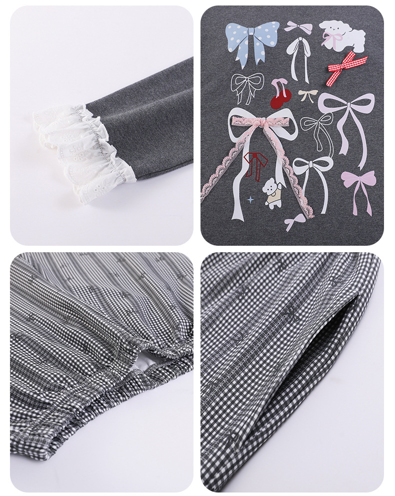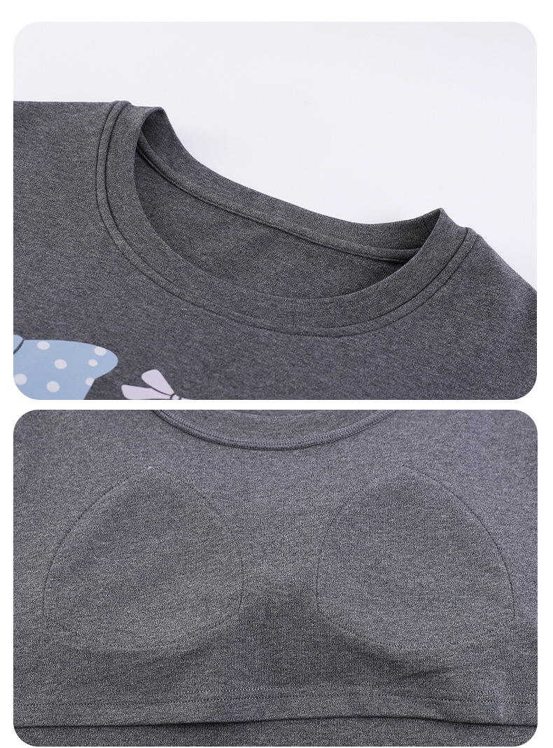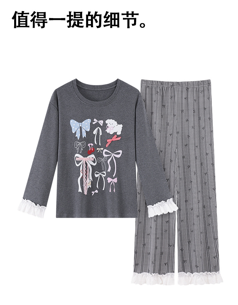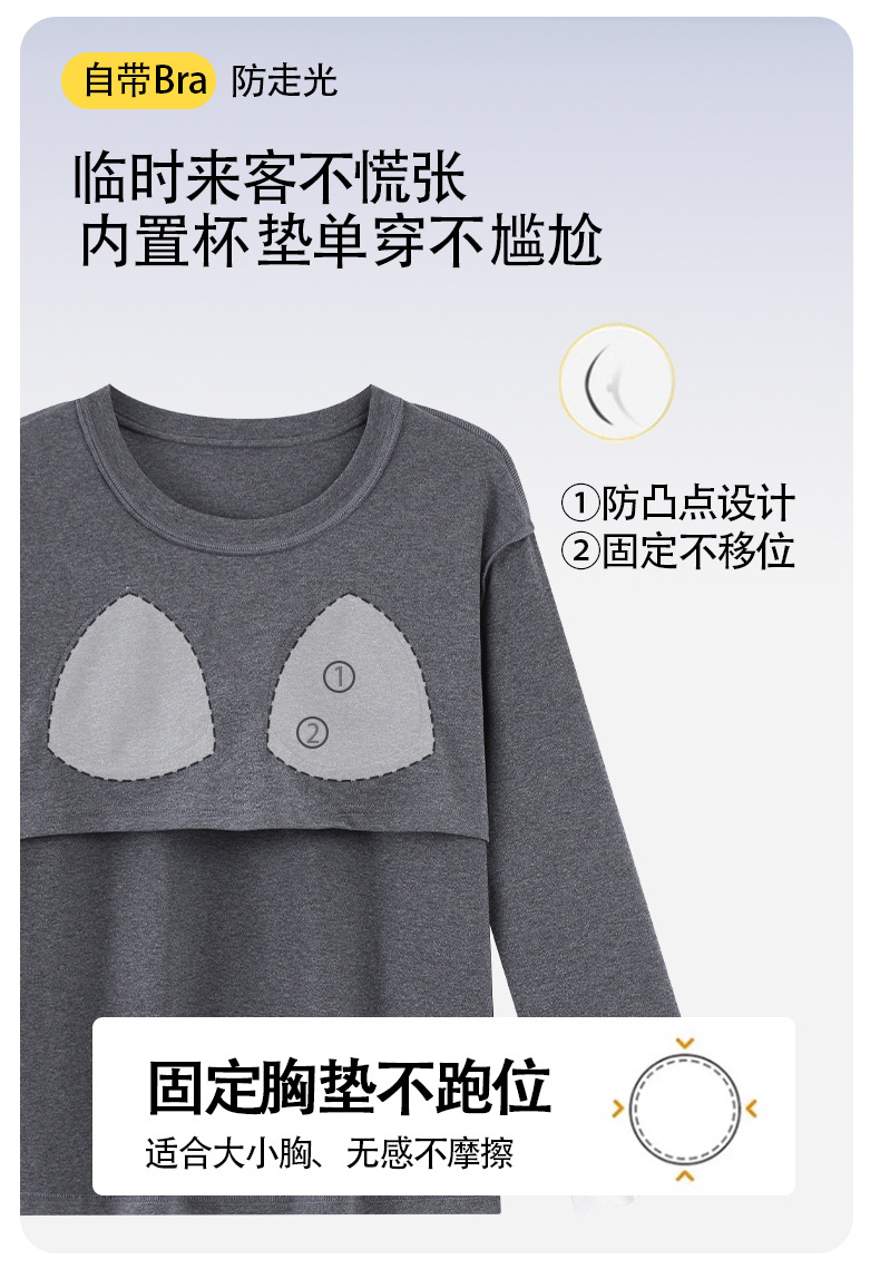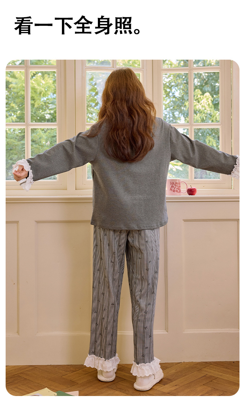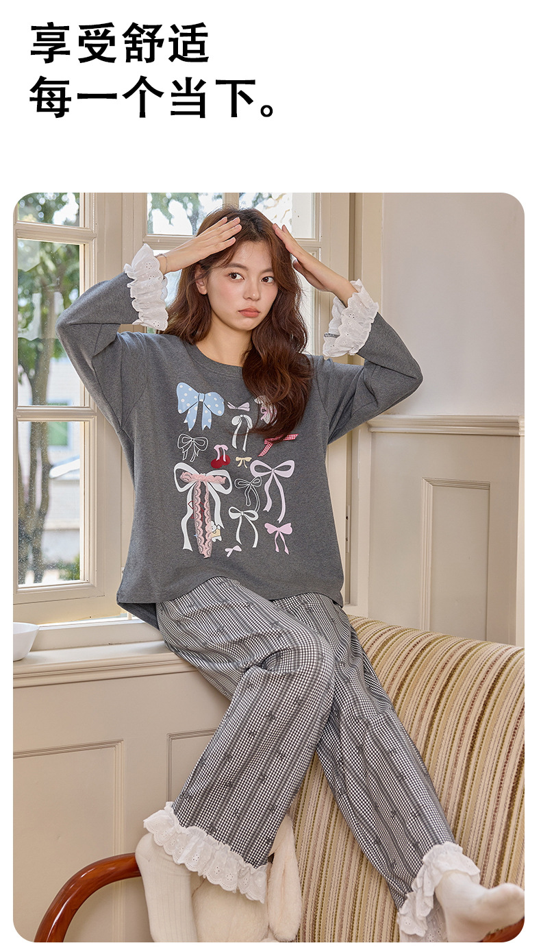 가슴 패드가 있는 여성용 잠옷 2025 가을 겨울 코마사 면 긴팔 바지 세트 만화 귀여운 캐주얼 홈웨어스토어 가기