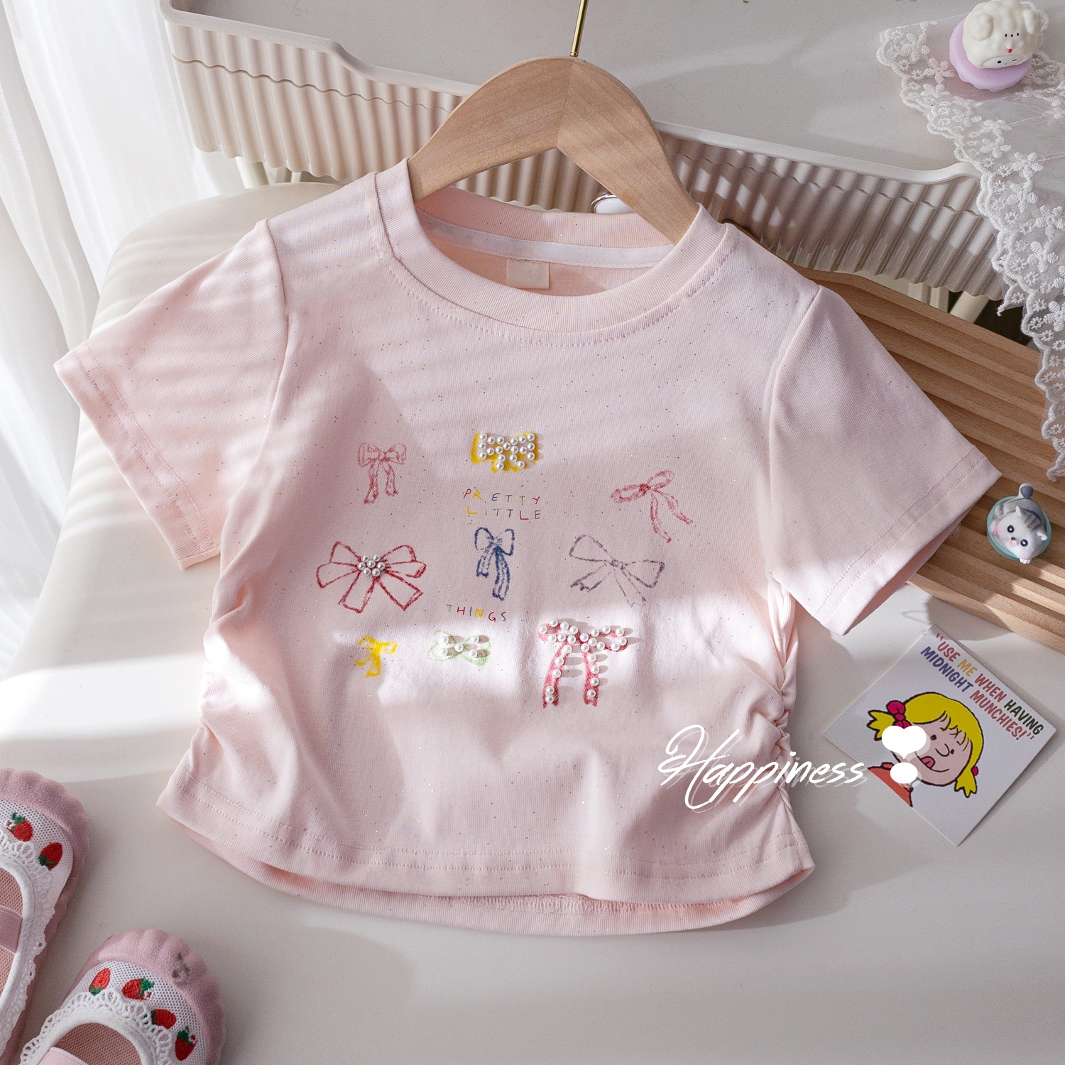 여자 반팔 티셔츠 여름 새로운 한국식 슬림핏 세련된 프린트 반소매 옷 아기의 여름 유행 탑스토어 가기