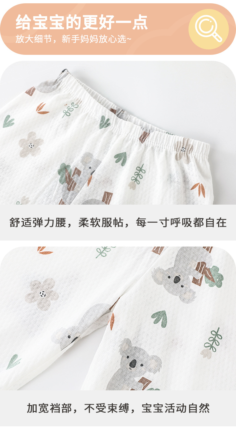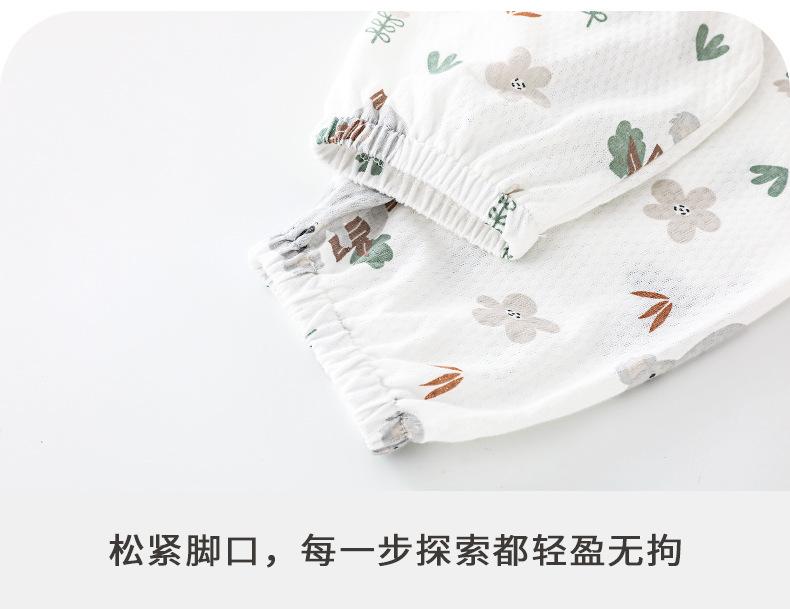아기 모기 방지 바지 여름 얇은 다리 발가락 순수한 면 캐주얼 바지 소년 소녀 메쉬 통기성 아기 바지 여름 착용