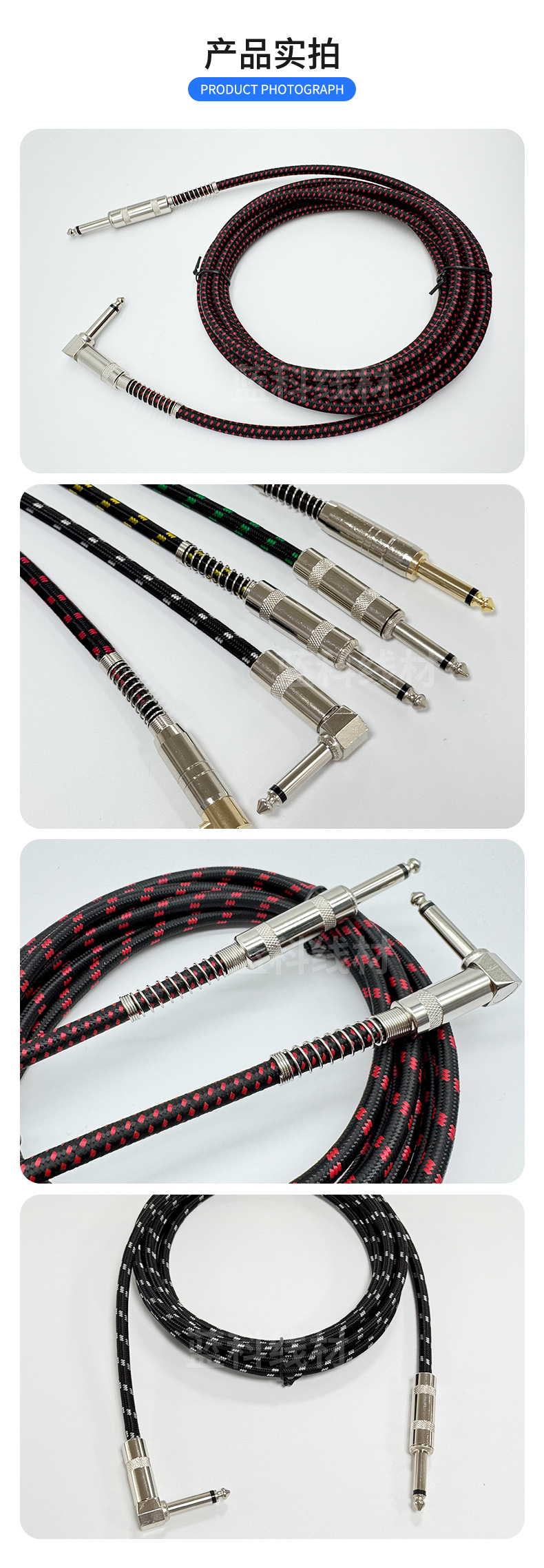 도매 전기 기타 연결 케이블, 기타 연결 케이블, 남성-남성 직선 및 각진형, 베이스 오디오용, 다양한 규격, 노이즈 감소 케이블