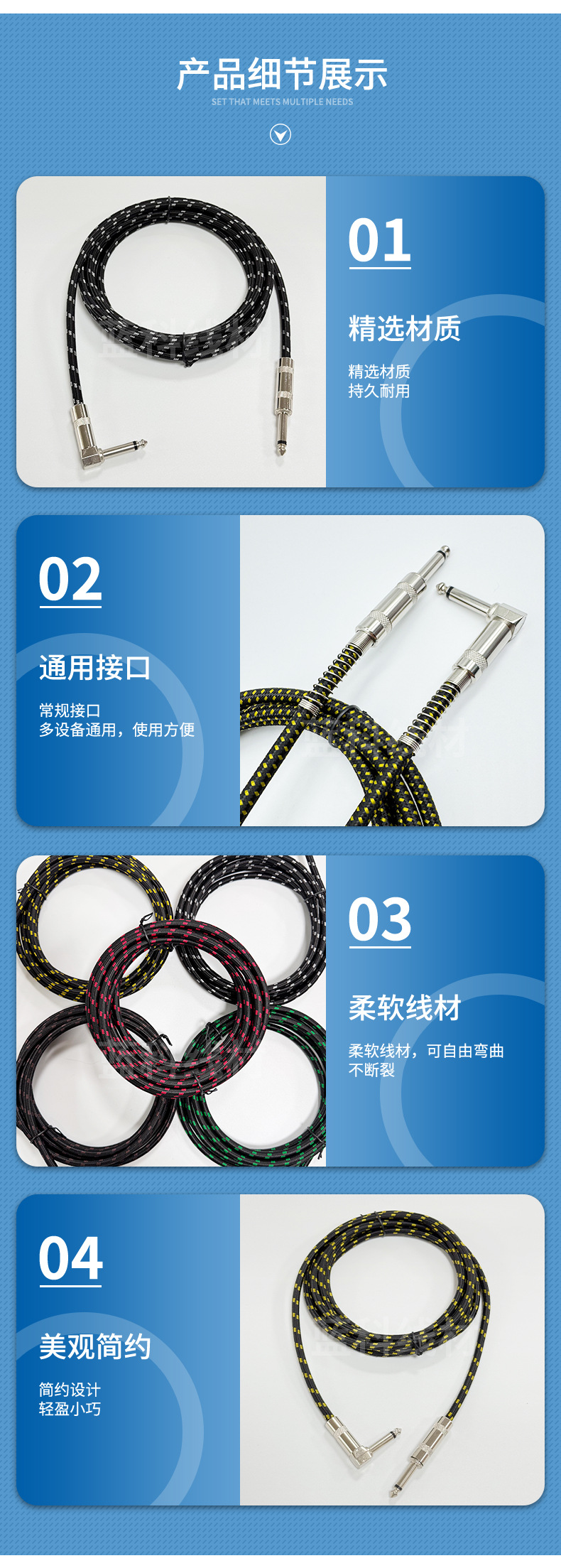 도매 전기 기타 연결 케이블, 기타 연결 케이블, 남성-남성 직선 및 각진형, 베이스 오디오용, 다양한 규격, 노이즈 감소 케이블스토어 가기