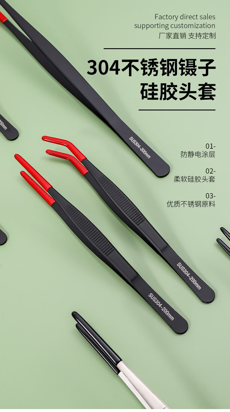 • 304 검정색 스트레이트 헤드 200mm-(빨간색 플라스틱 슬리브)