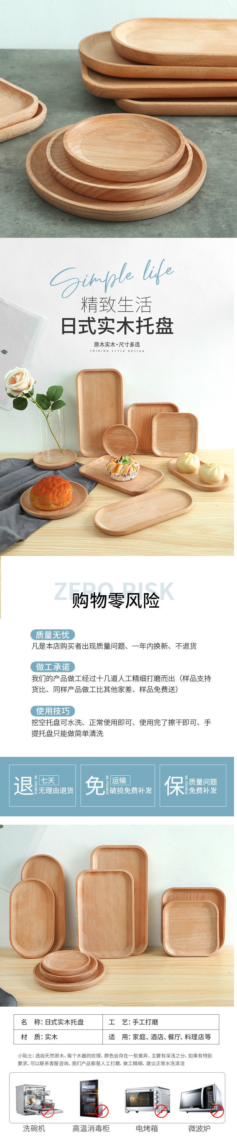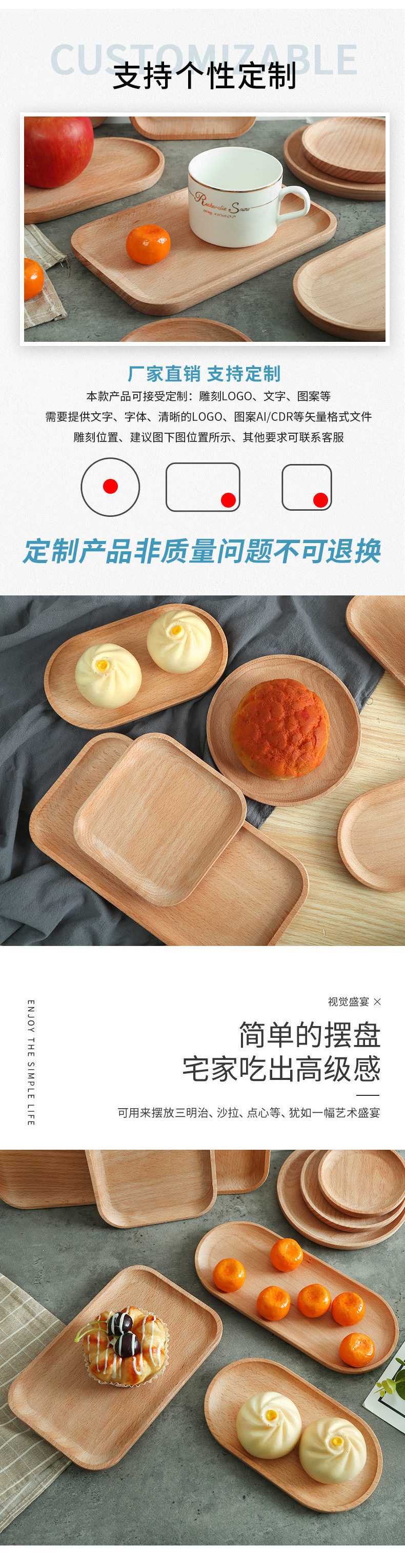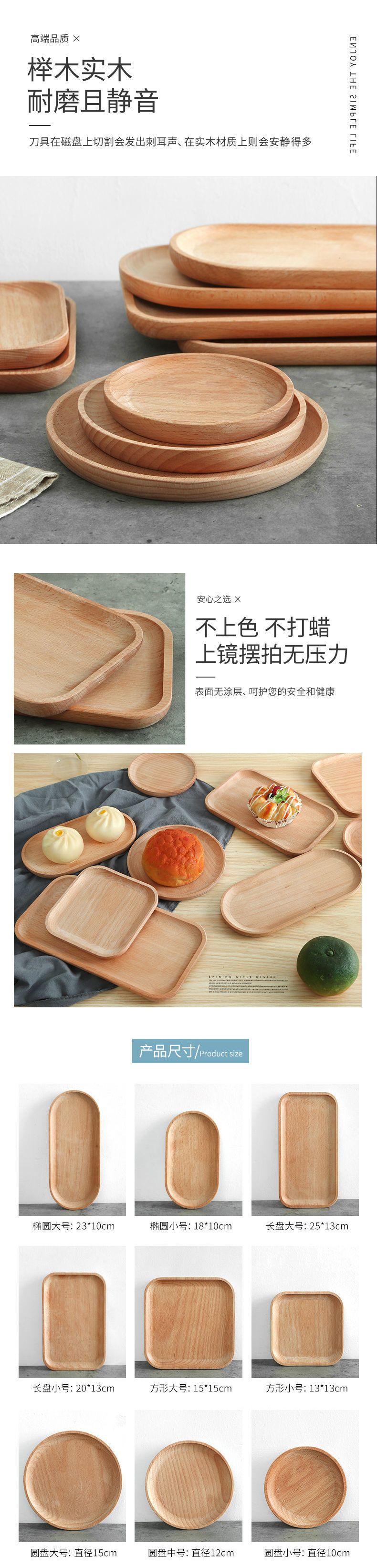 단단한 나무 트레이 스타일 가정용 직사각형 원형 일본식 디너 플레이트 피자 나무 트레이 스테이크 나무 접시 차 트레이스토어 가기