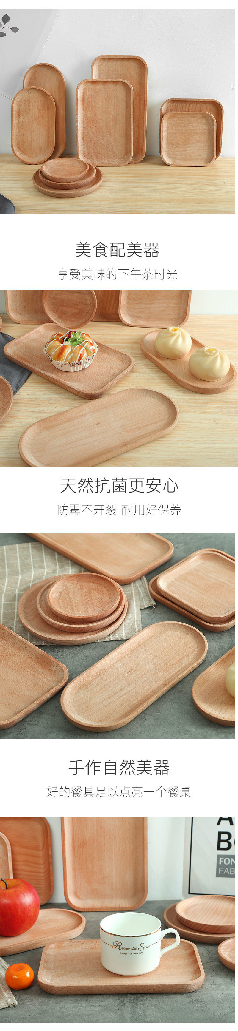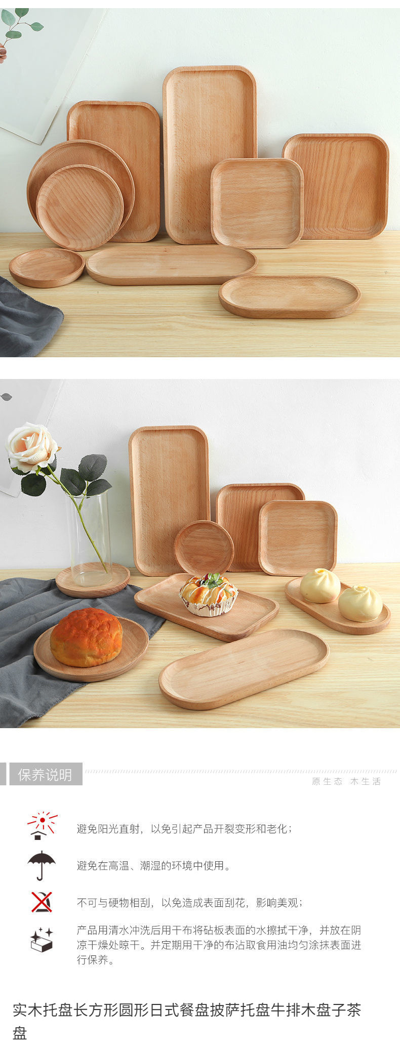 단단한 나무 트레이 스타일 가정용 직사각형 원형 일본식 디너 플레이트 피자 나무 트레이 스테이크 나무 접시 차 트레이