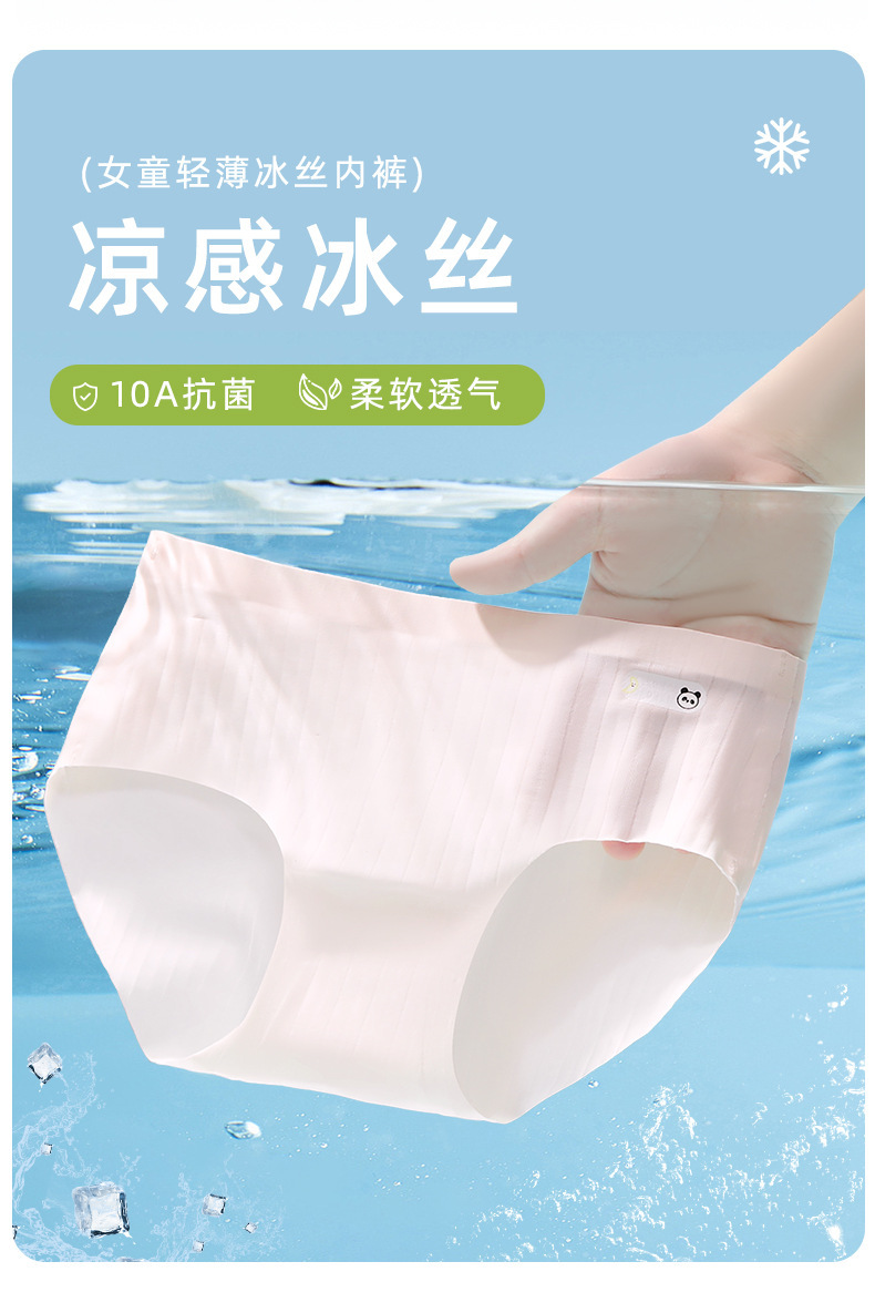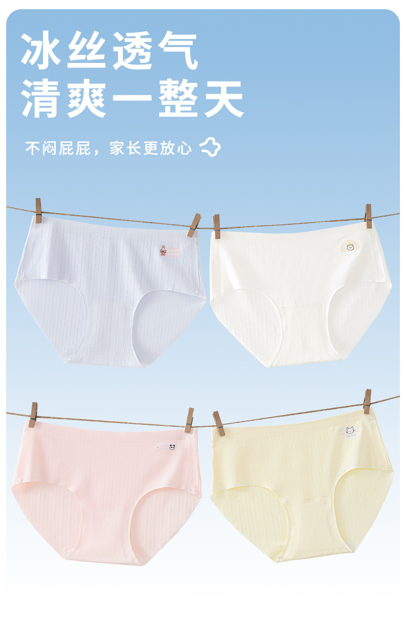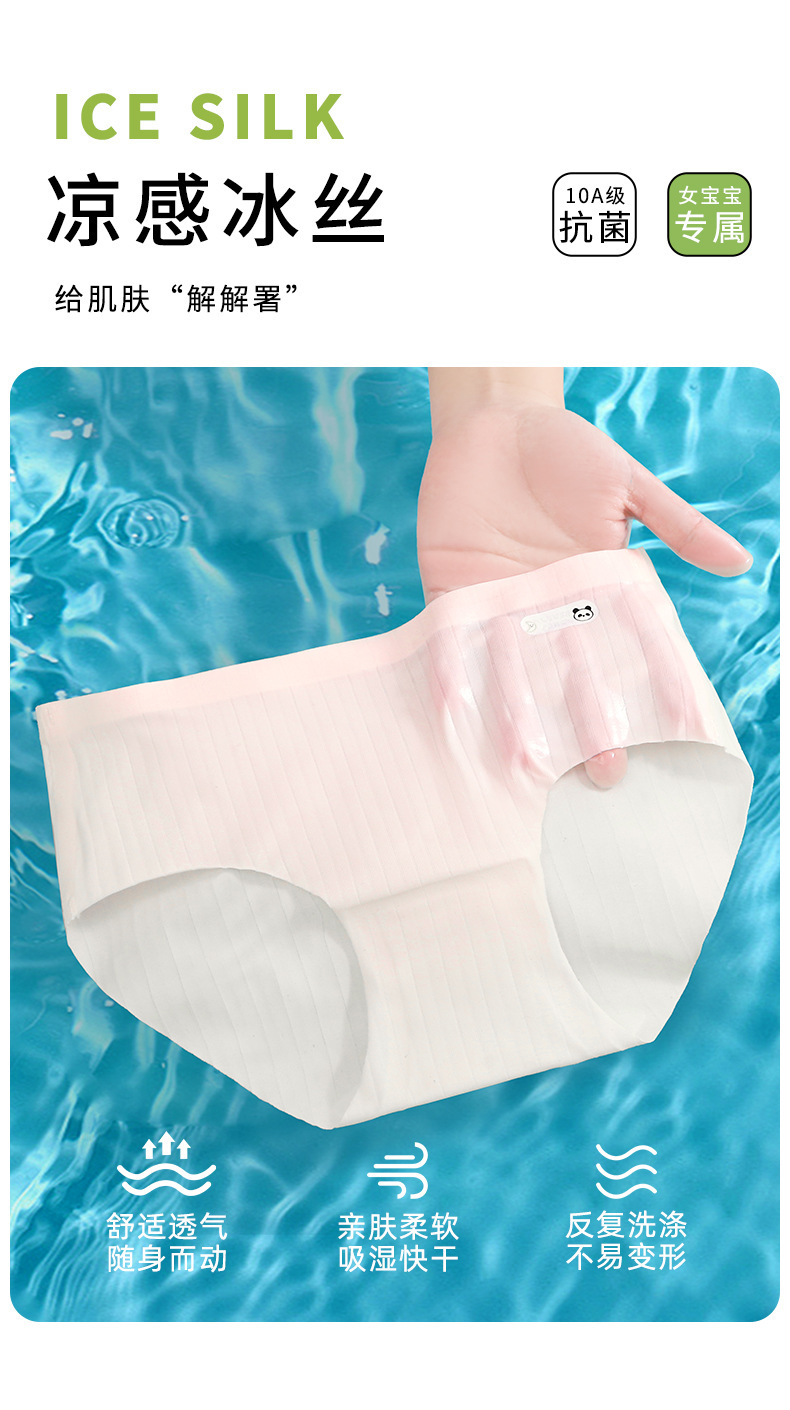 Tyne Bear Ice Silk Seamless Girls 속옷 Briefs 10A 항균 편안한 속옷 중간 허리 어린이 여름 얇은스토어 가기