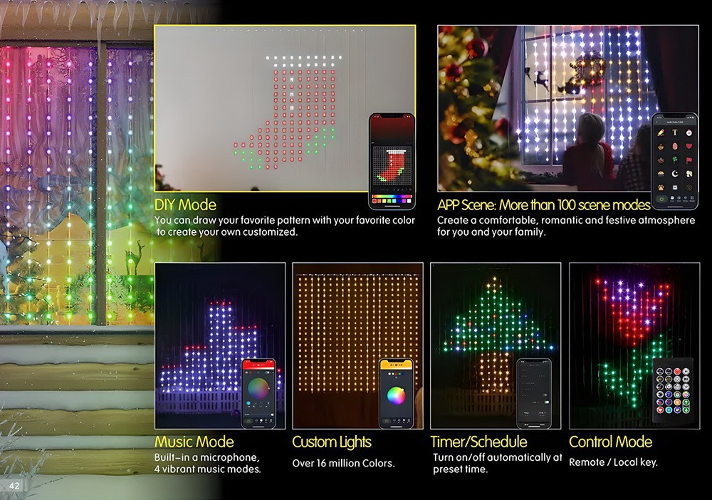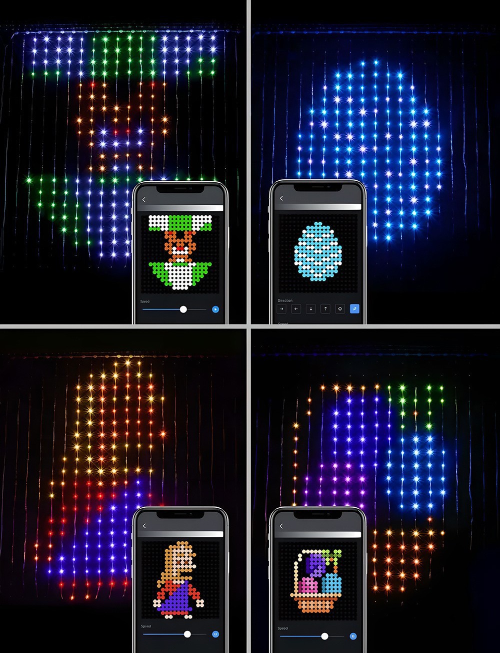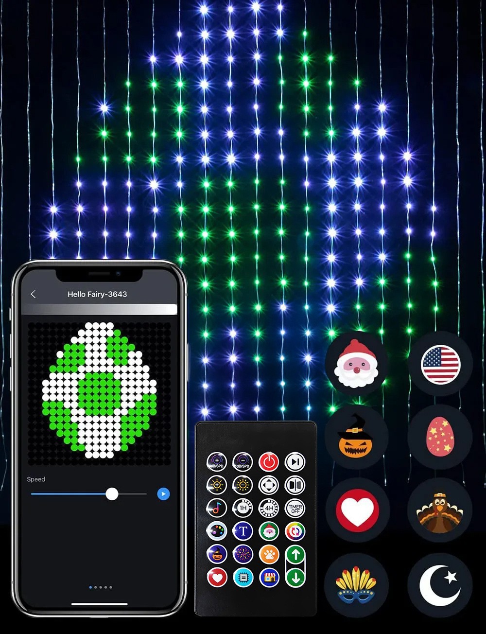 跨境窗帘灯幻彩皮线灯DIY装饰灯APP蓝牙点控智能可编程屏幕窗帘灯