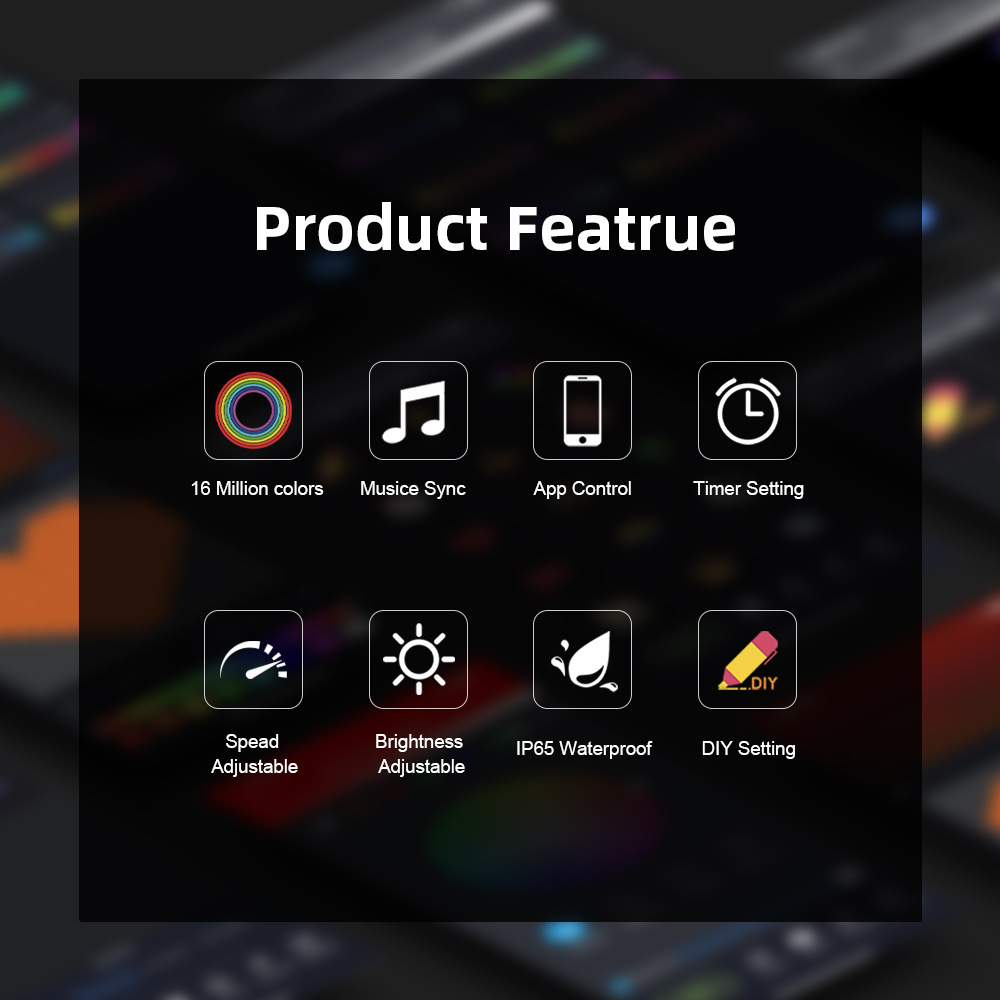 智能幻彩皮线灯DIY装饰灯串跨境热销蓝牙APP点控可编程屏幕窗帘灯