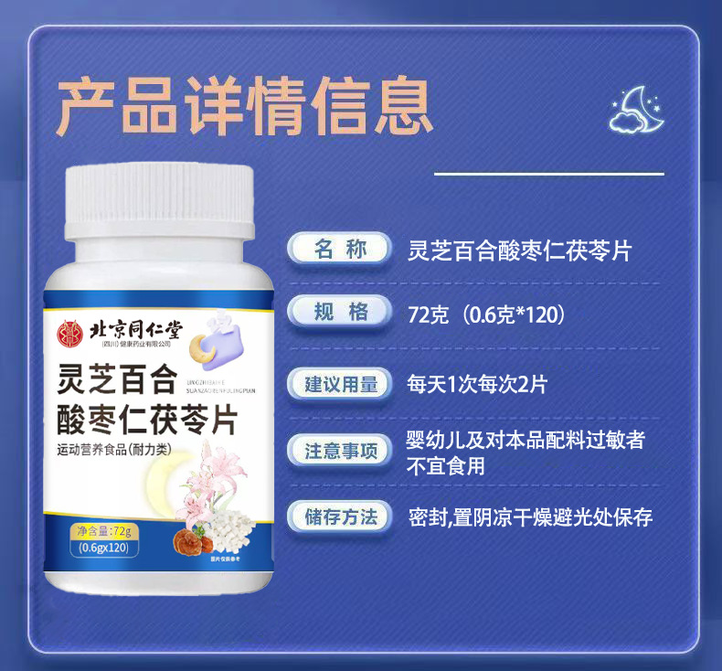베이징 통렌탕 Ganoderma Lily Jujube Seed Poria Cortex 정제 120정/병스토어 가기