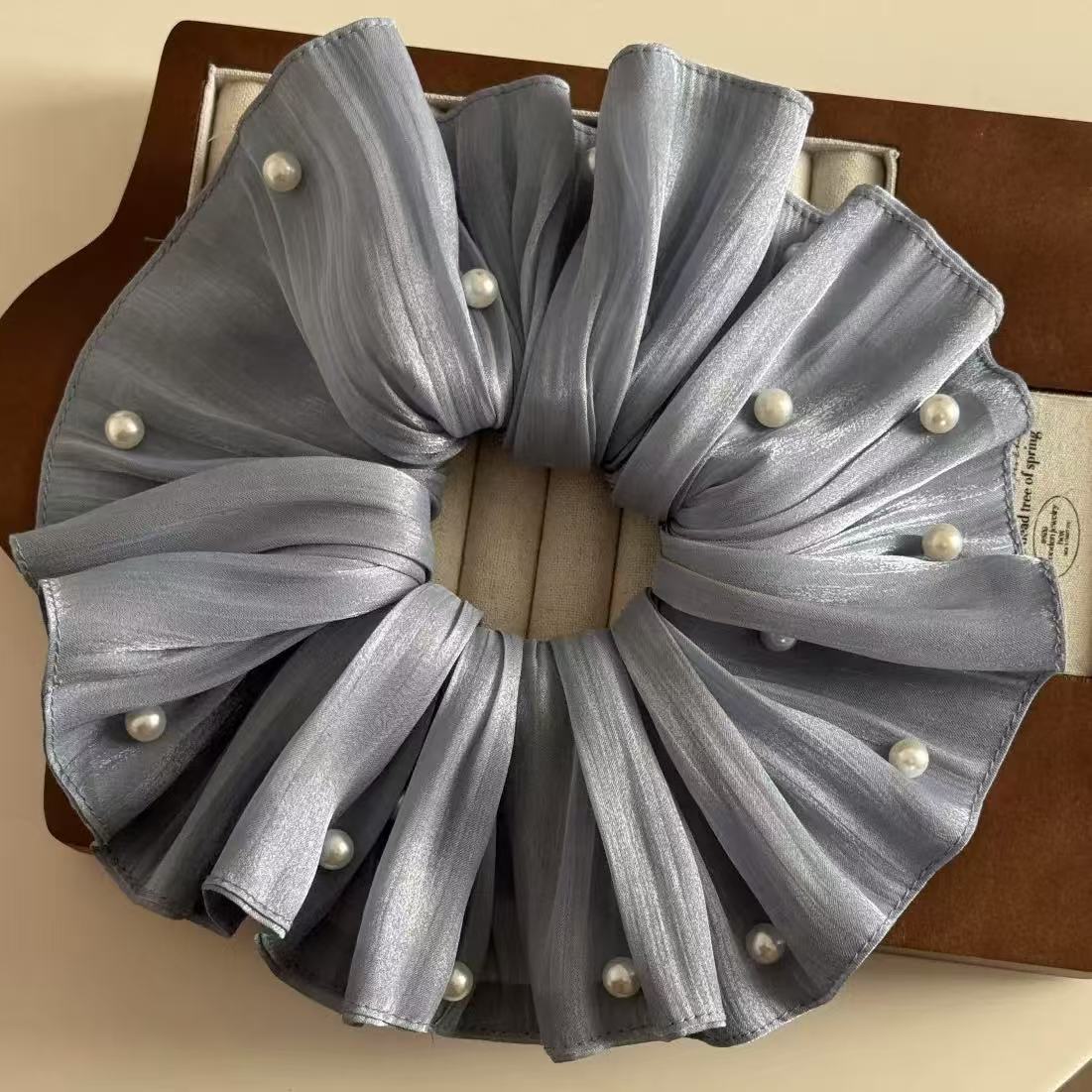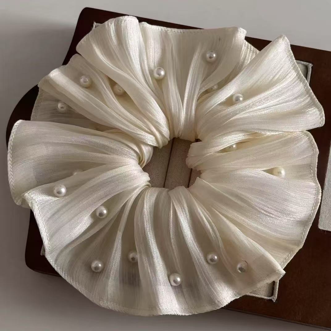 • 오프화이트 & 모조 실크 주름 머리끈#약 20cm