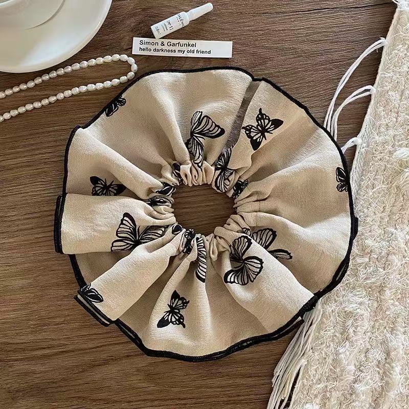• 오프화이트 & 나비 프린트 머리끈#약 19cm