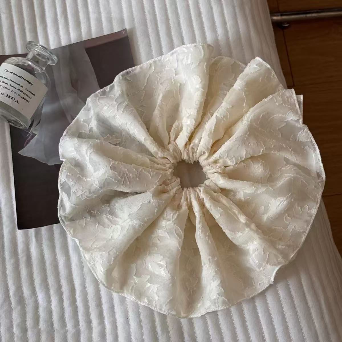 • 오프화이트 & 메쉬 플리츠 헤어타이#약 25cm