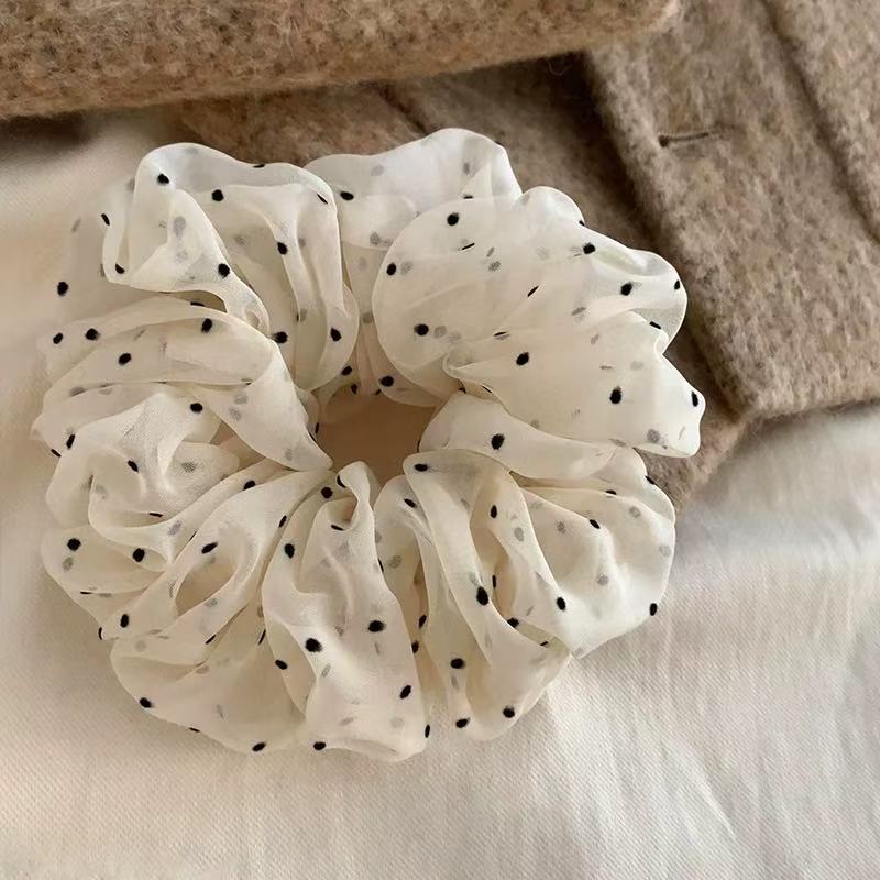 • 오프화이트 & 메쉬 도트무늬 머리끈#약 14cm