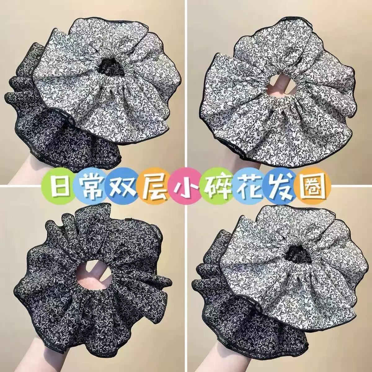 • 블랙 & 4겹 꽃무늬 머리끈#약 14cm
