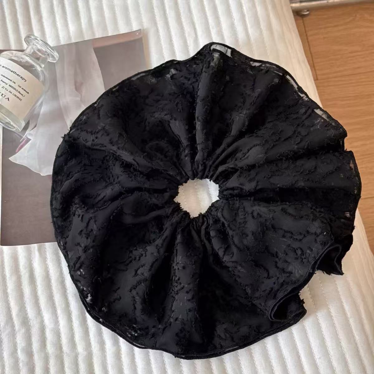 • 블랙 & 메쉬 플리츠 헤어 타이#약 25cm