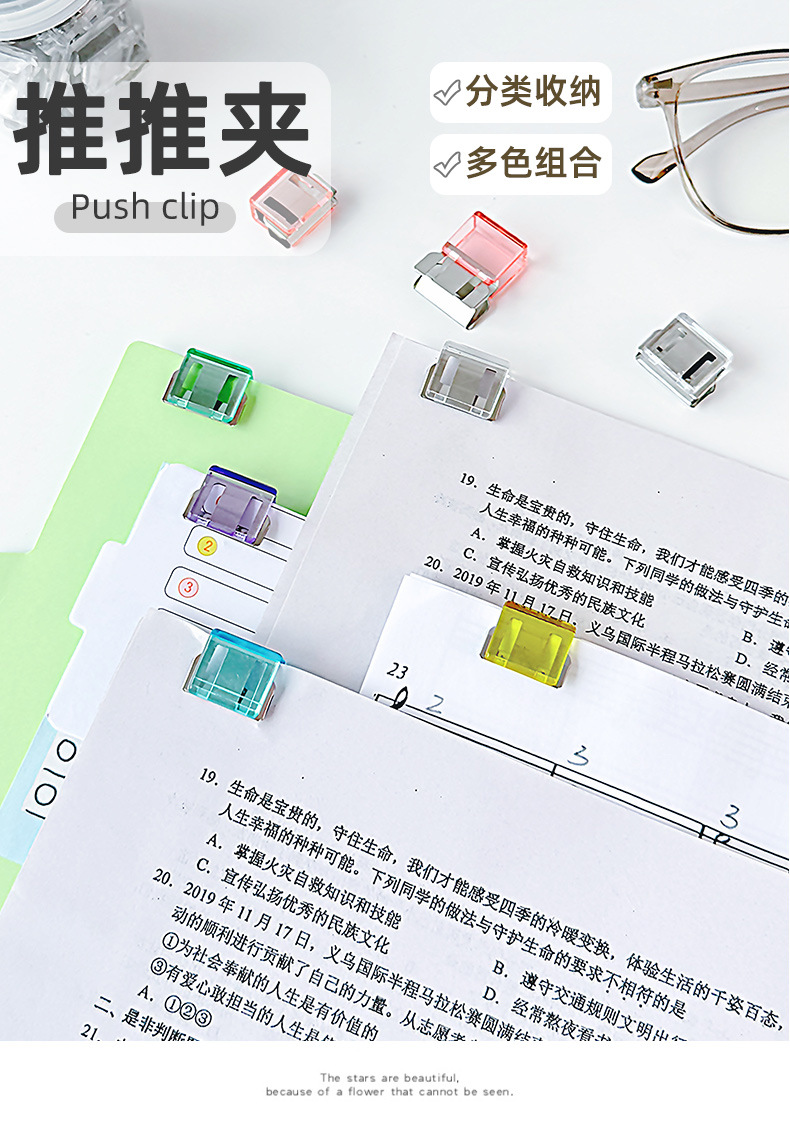 도매 푸시 클립 바지 클립 창조적 인 학생 다기능 클립 종이 파일 저장 클립 투명 바인딩 클립