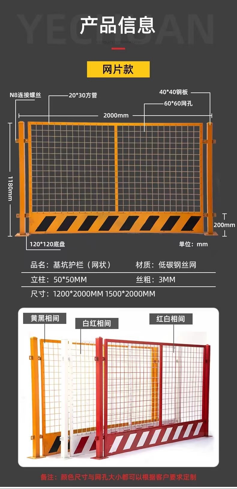 기초공사용 가드레일, 건설현장 안전경고, 건설울타리, 가장자리보호, 현장도로공사용 표준화울타리