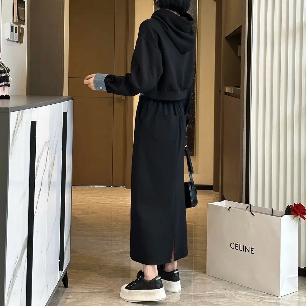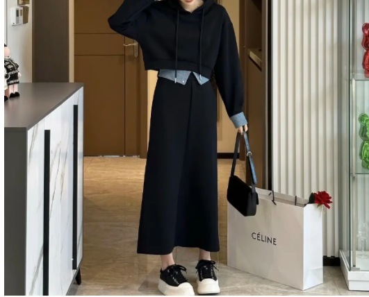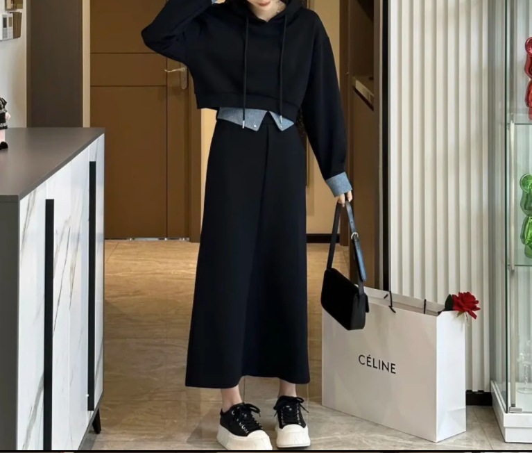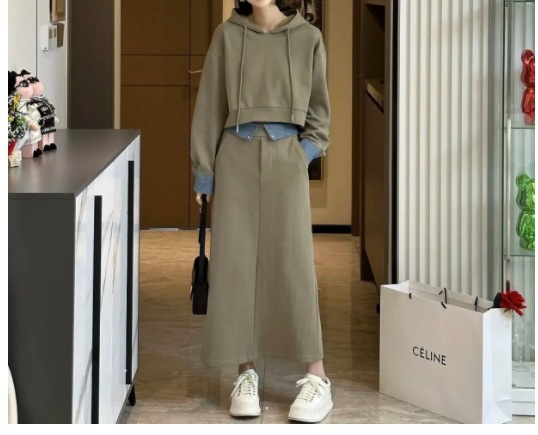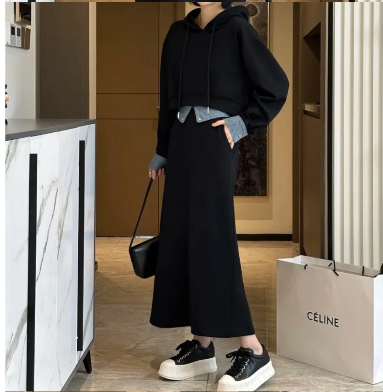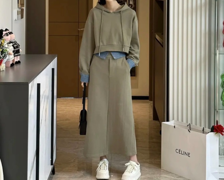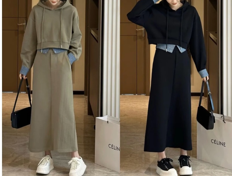 플러스 사이즈 여성 2024 가을, 겨울 스웨트 슈트 여성 패션 스타일 연령 감소 슬리밍 스커트 팻 mm를위한 세련된 투피스 세트스토어 가기