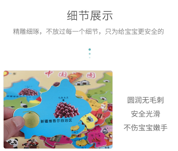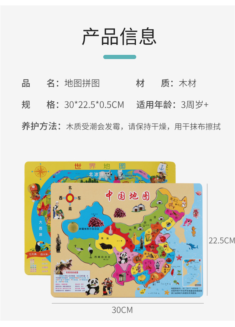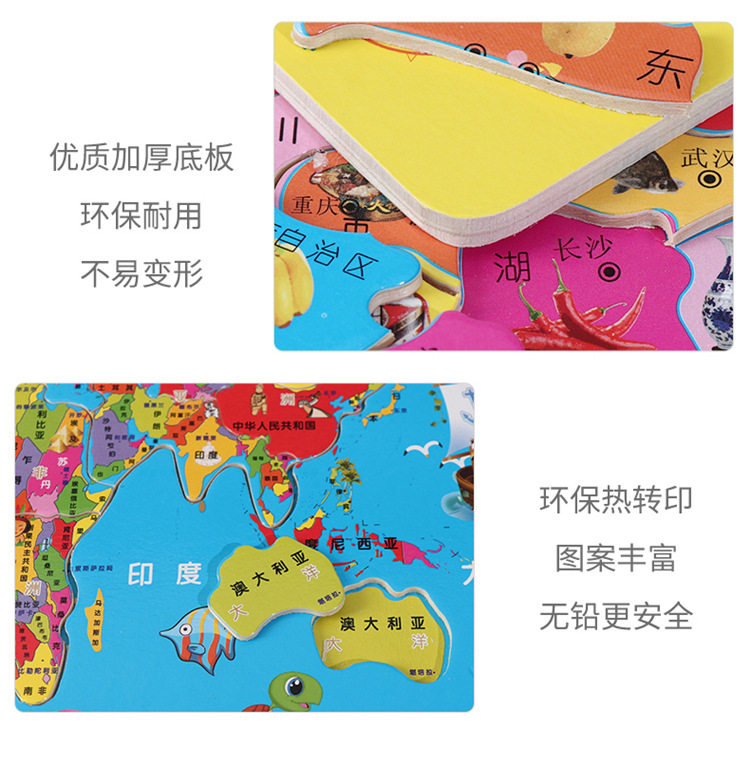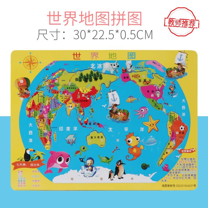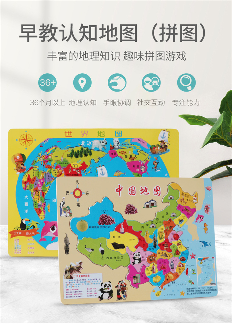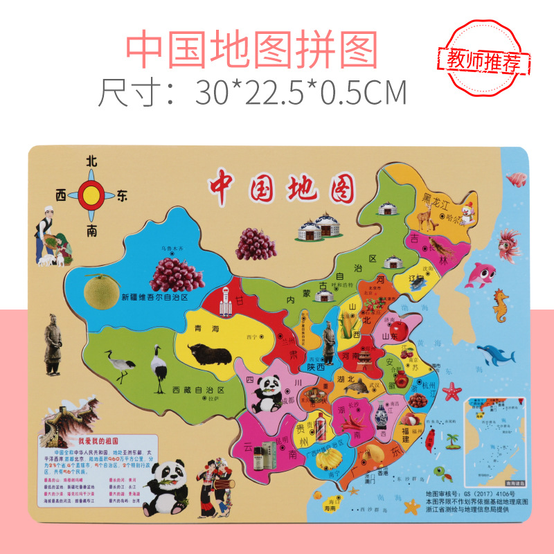 나무 중국 세계지도 퍼즐 어린이 교육 장난감 학생 조기 교육 지리 소년과 소녀 3-6 세