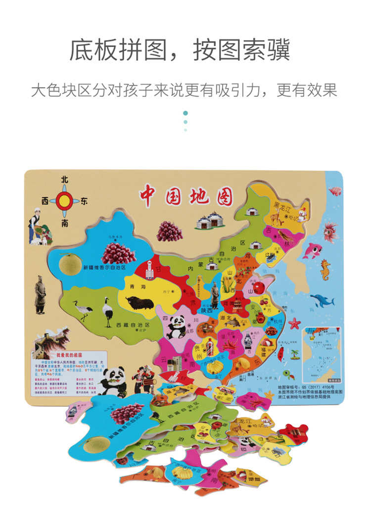 나무 중국 세계지도 퍼즐 어린이 교육 장난감 학생 조기 교육 지리 소년과 소녀 3-6 세스토어 가기