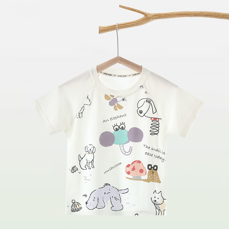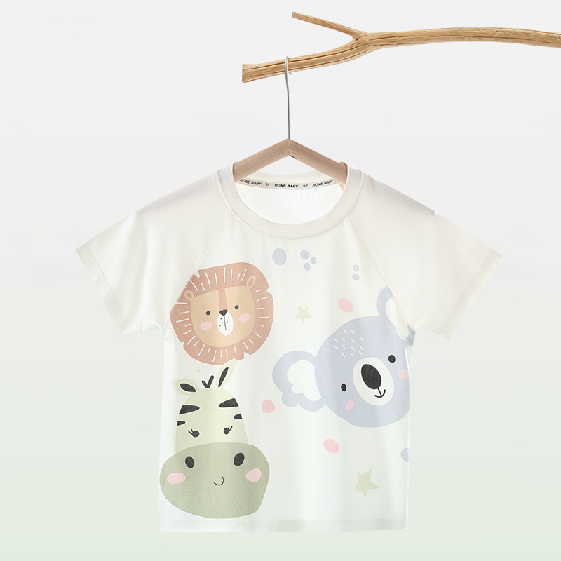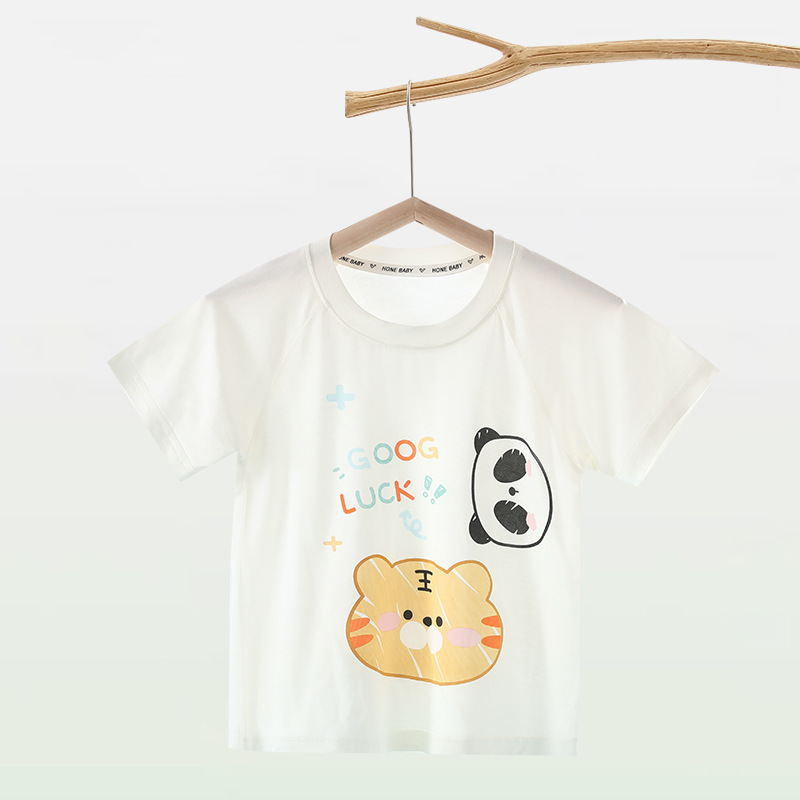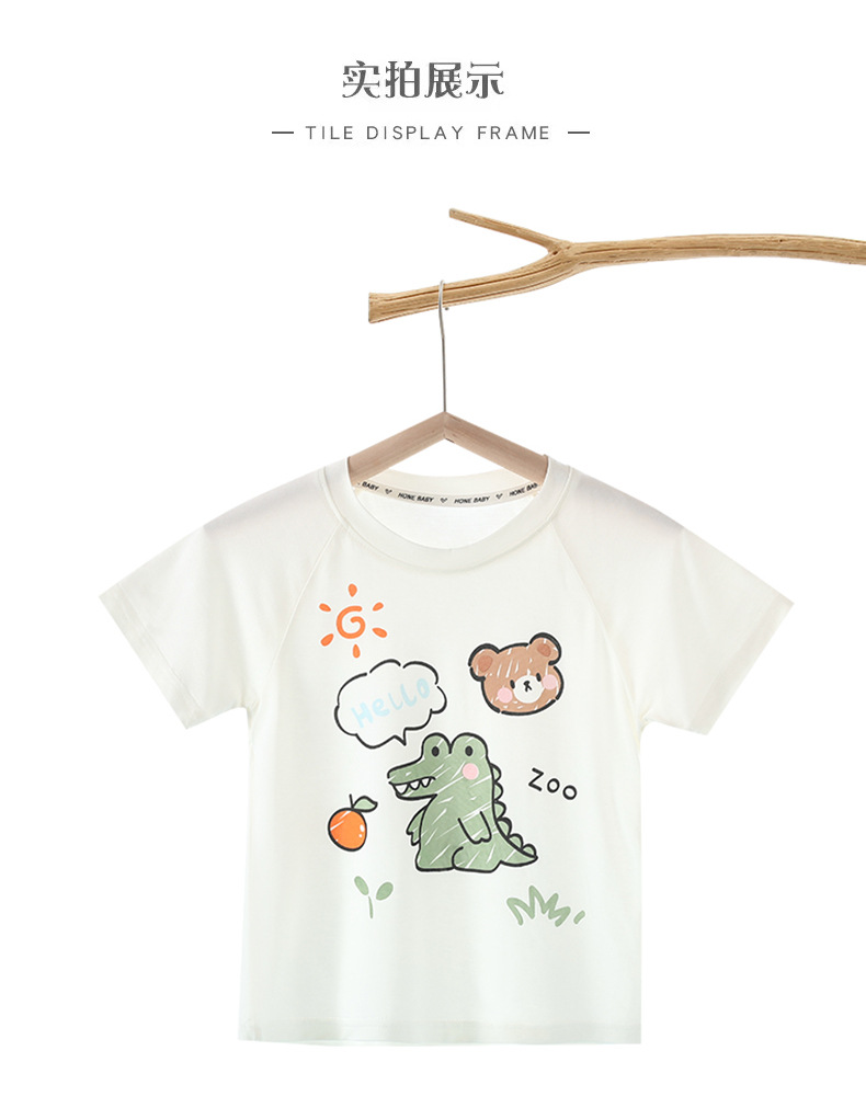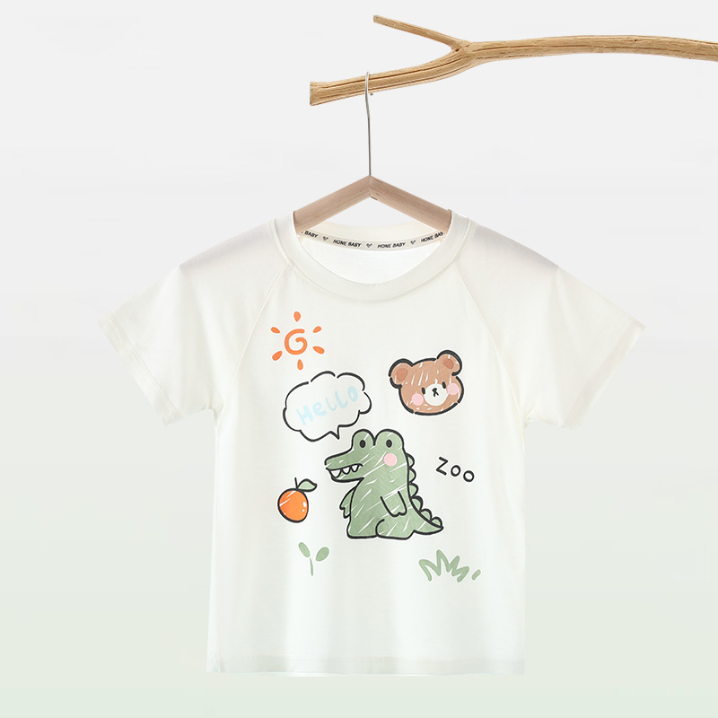어린이 여름 모달 반팔 티셔츠 만화 곰 중소 소년 소녀 아기 크루 넥 탑 반팔 셔츠