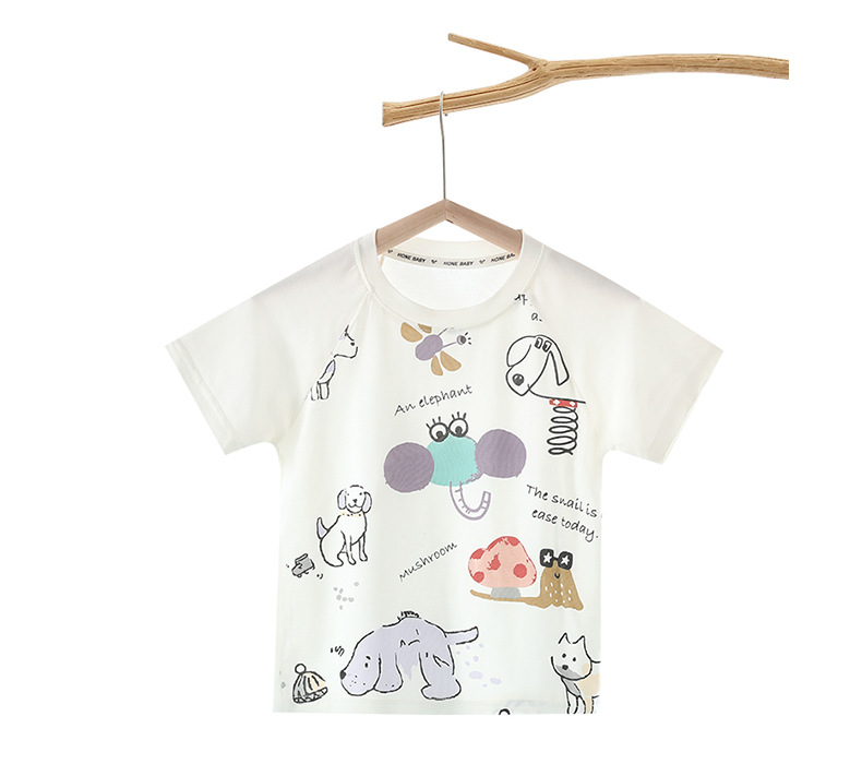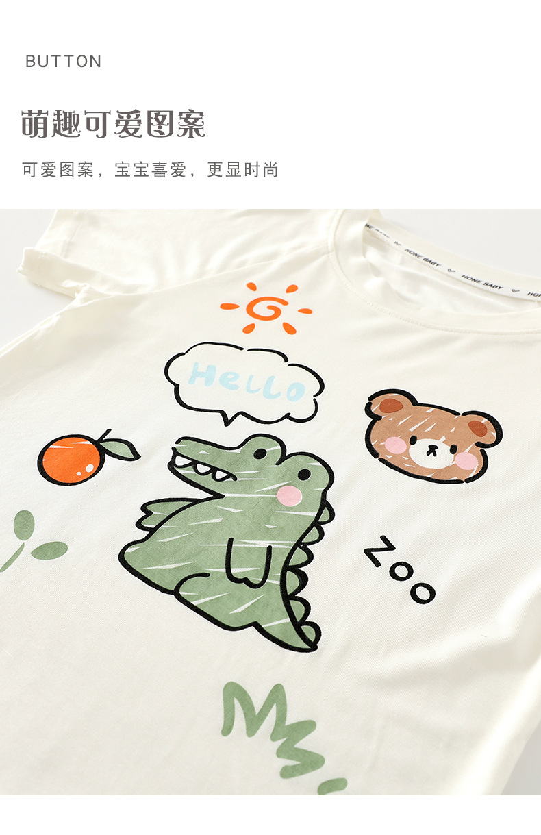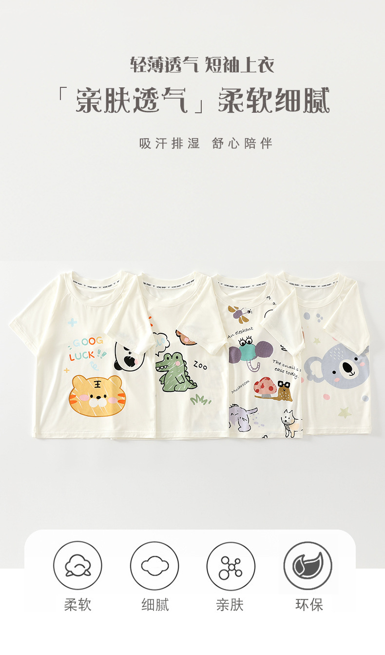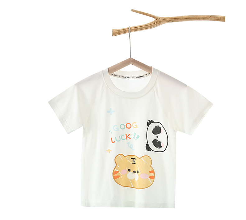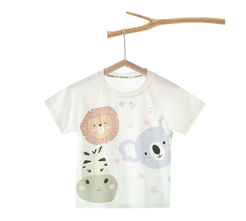 어린이 여름 모달 반팔 티셔츠 만화 곰 중소 소년 소녀 아기 크루 넥 탑 반팔 셔츠