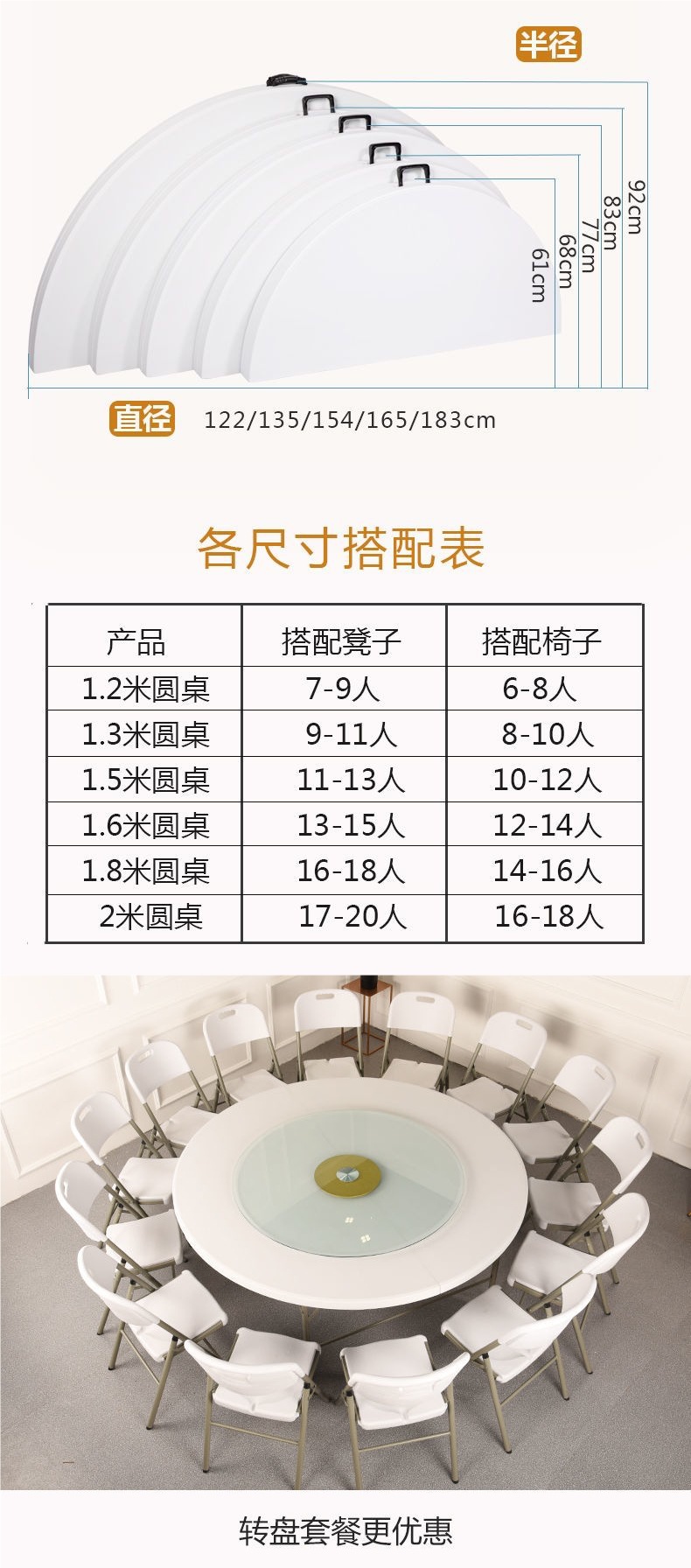 가정용 플라스틱 대형 원형 테이블 접이식 식탁 야외 스낵 바 테이블과 의자 10인용을 위한 둥근 간단한 접이식 식탁스토어 가기