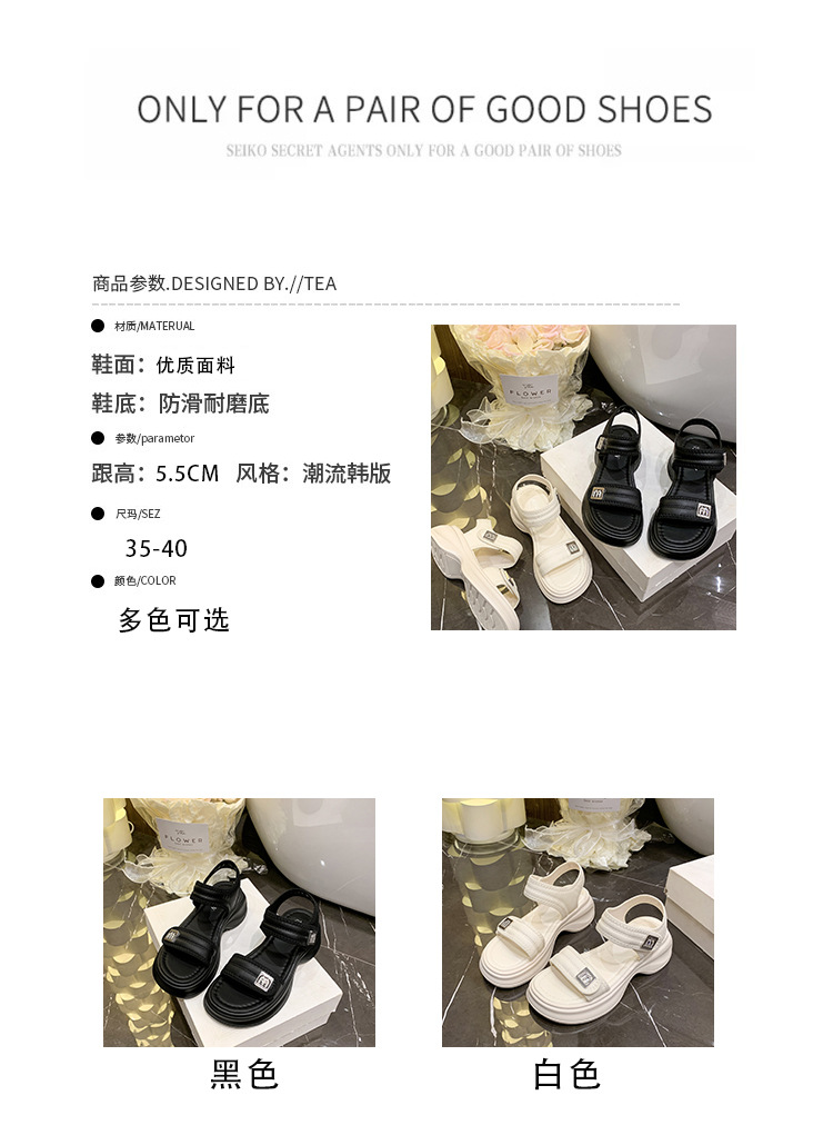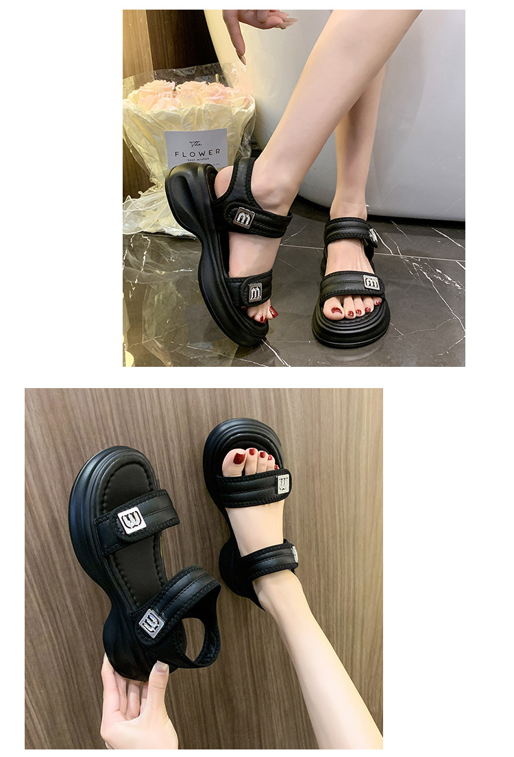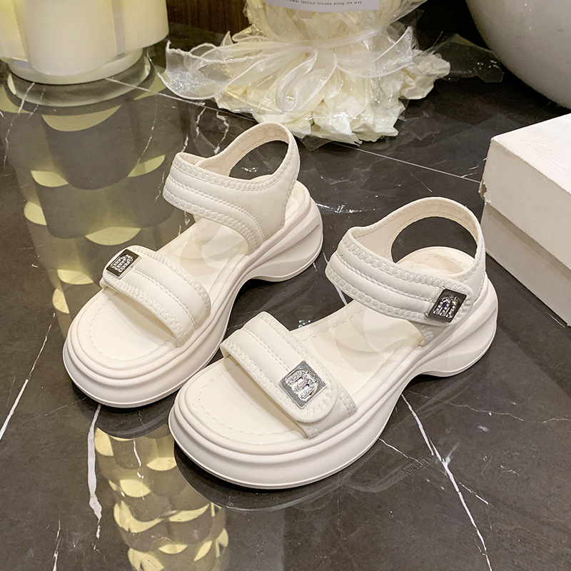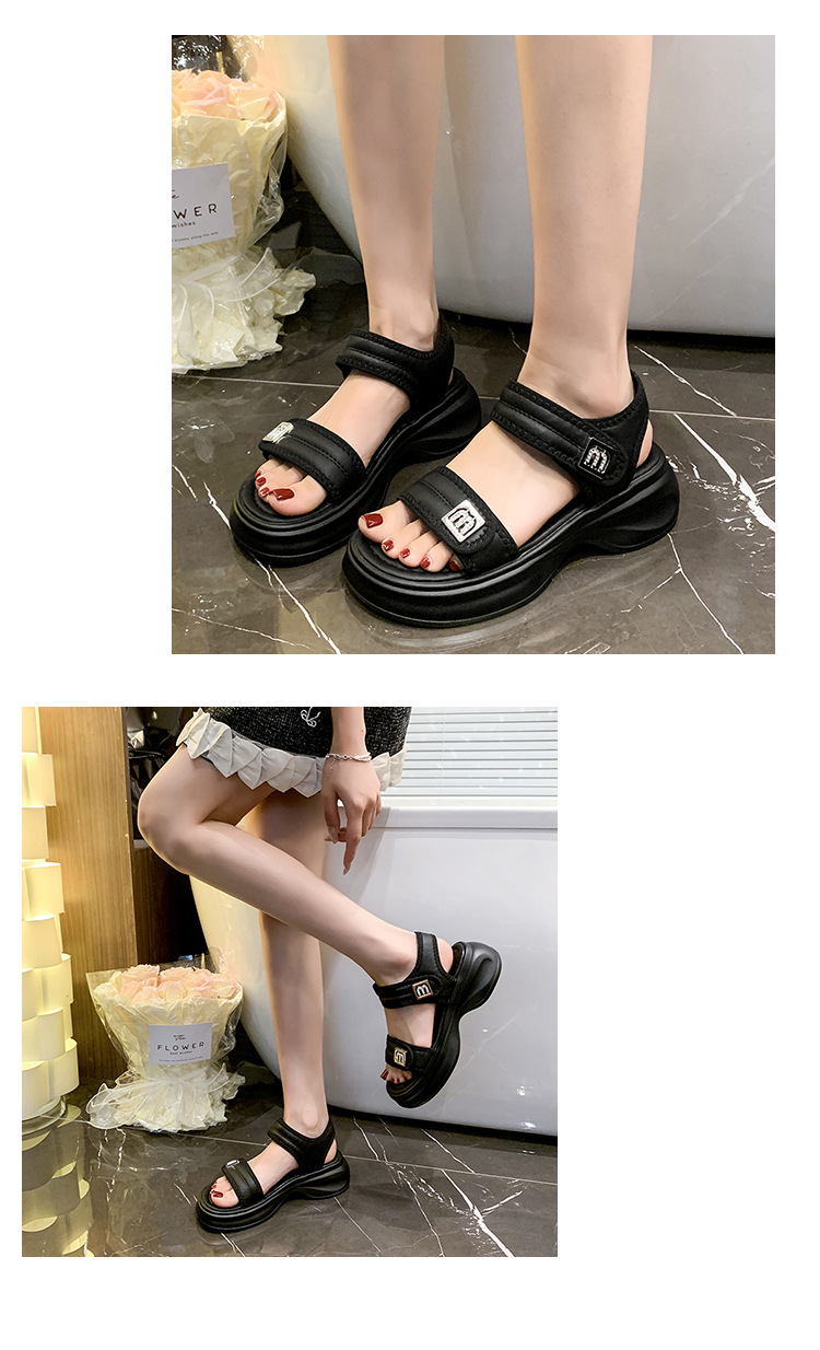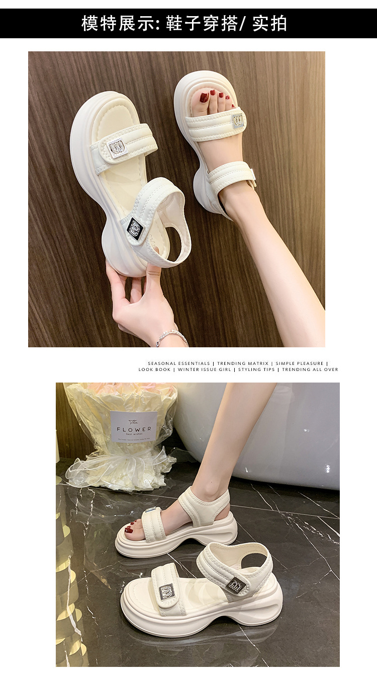 똥 밟는 느낌의 여성 샌들 2025 신상 여름 슈퍼 핫 벨크로 두꺼운 굽 작은 사람들을 위한 두꺼운 밑창 로마 신발스토어 가기
