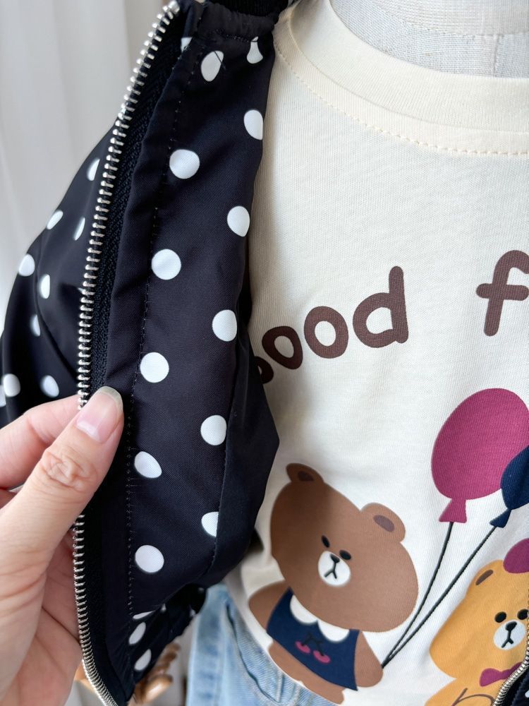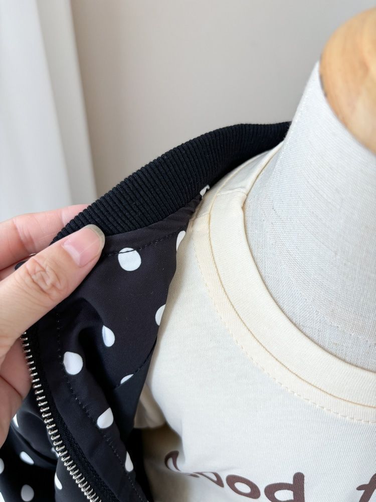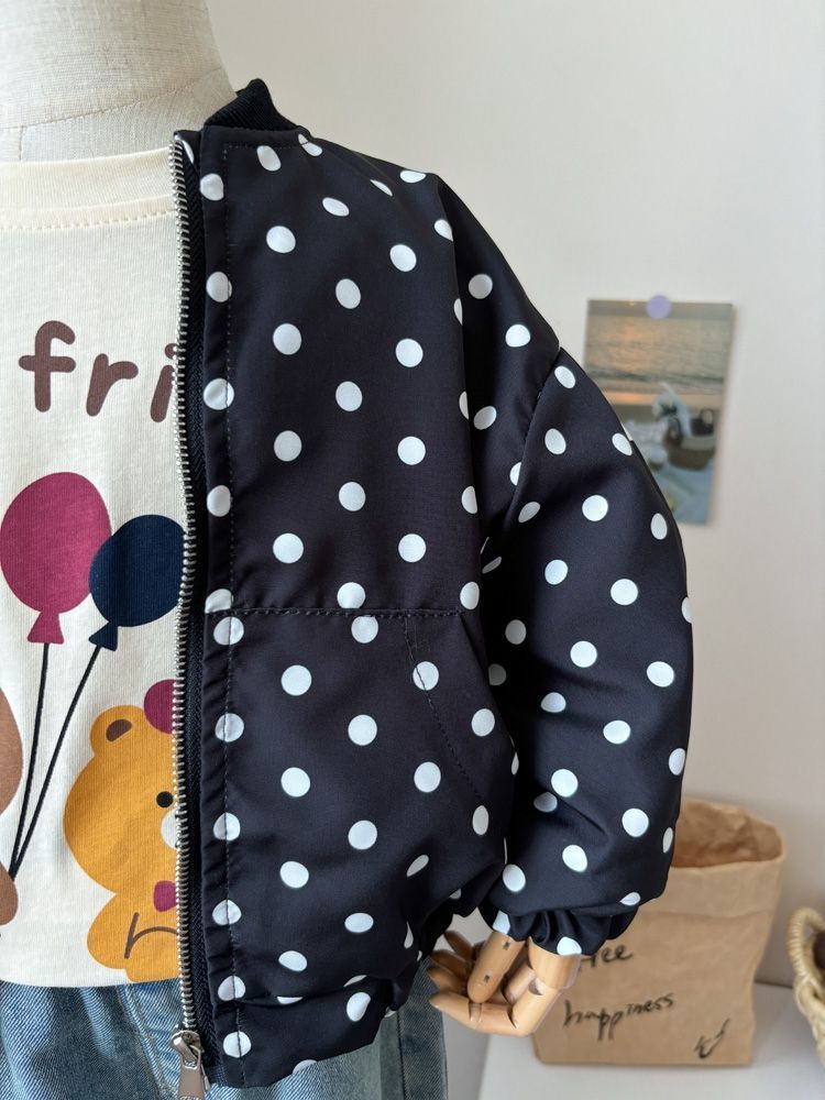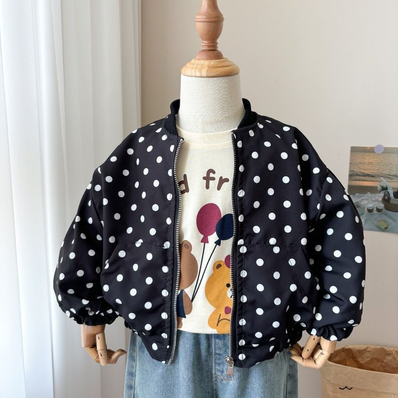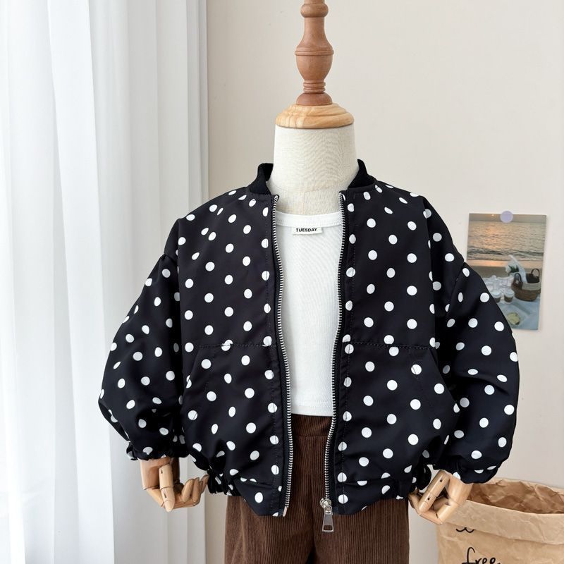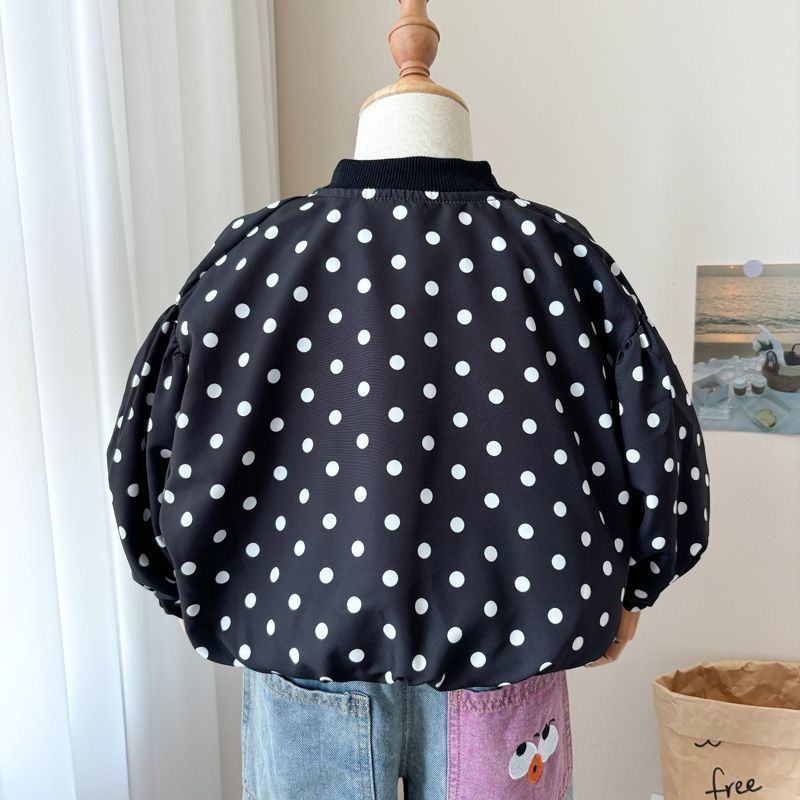 여아 코트, 자매복, 25가지 새로운 스타일, 얇고 세련된 물방울 무늬 한국식 퍼프 슬리브 패션 트렌드 봄, 가을 재킷