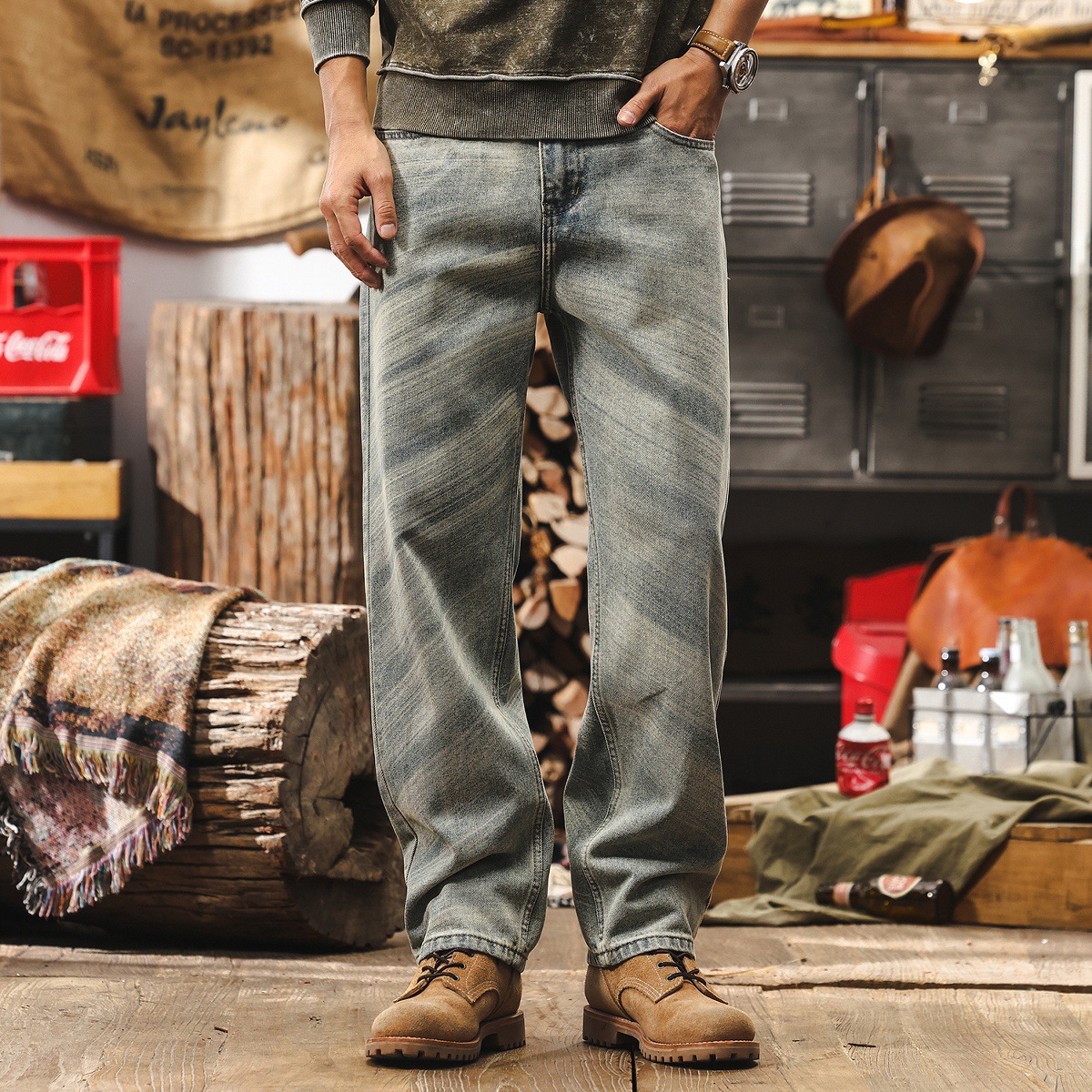 아메리칸 스타일 레트로 청바지 남성용 스트레이트 오일 브러쉬 Maliu Old Washed High Street Boys 캐주얼 트렌디 브랜드 남성용 바지스토어 가기