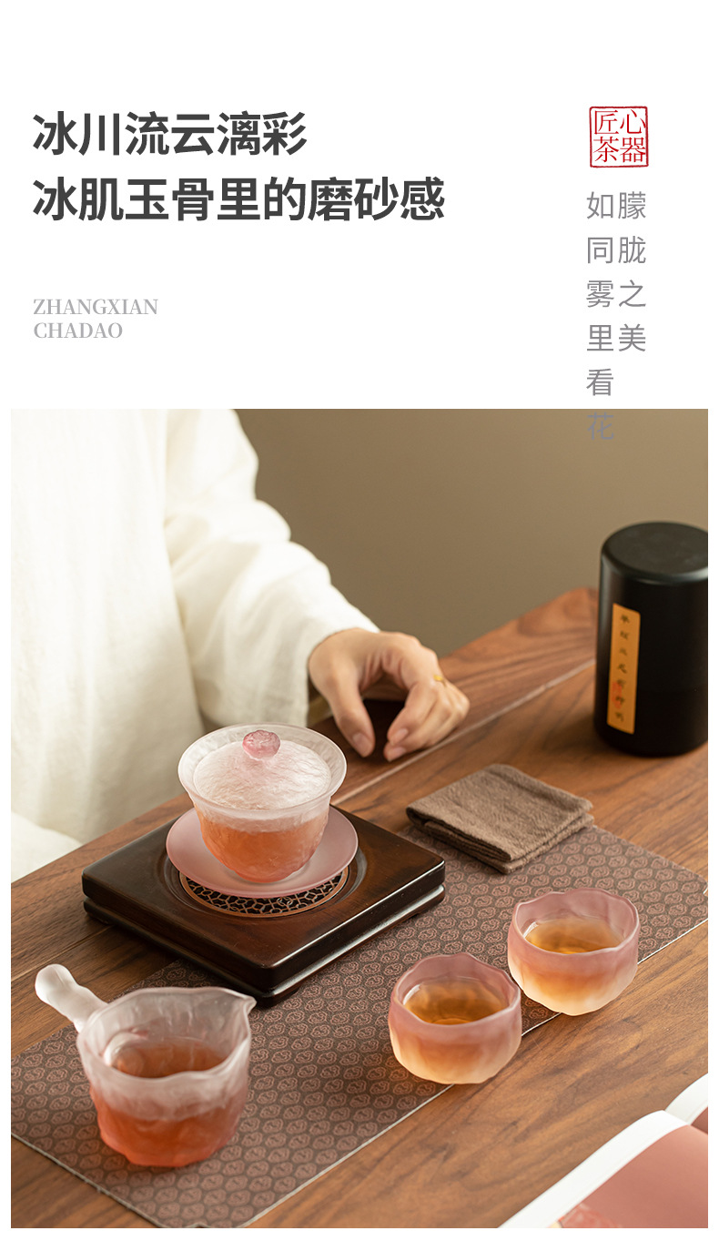 간단한 보라색 유약 수제 3 캡 그릇 젖빛 유리 차 세트 차 그릇 답답한 차 그릇 절묘한 쿵푸 차 세트스토어 가기