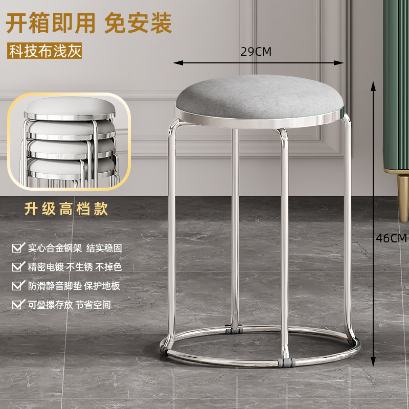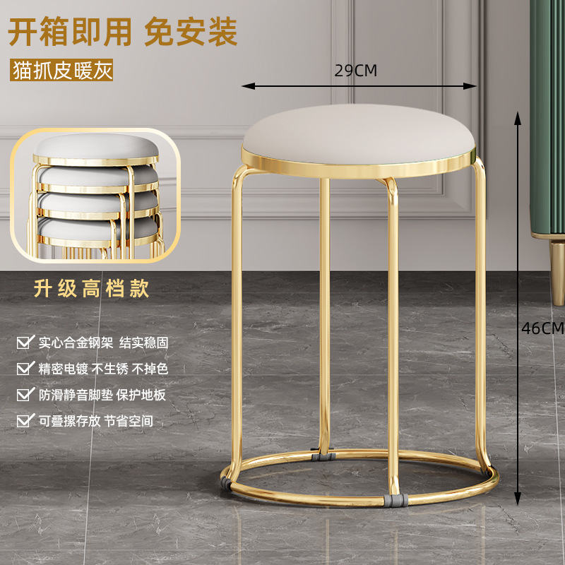 가벼운 고급 고급 라운드 의자 가정용 거실 낮은 의자 대기 식탁 의자 및 의자 강력하고 내구성 작은 스택 가능